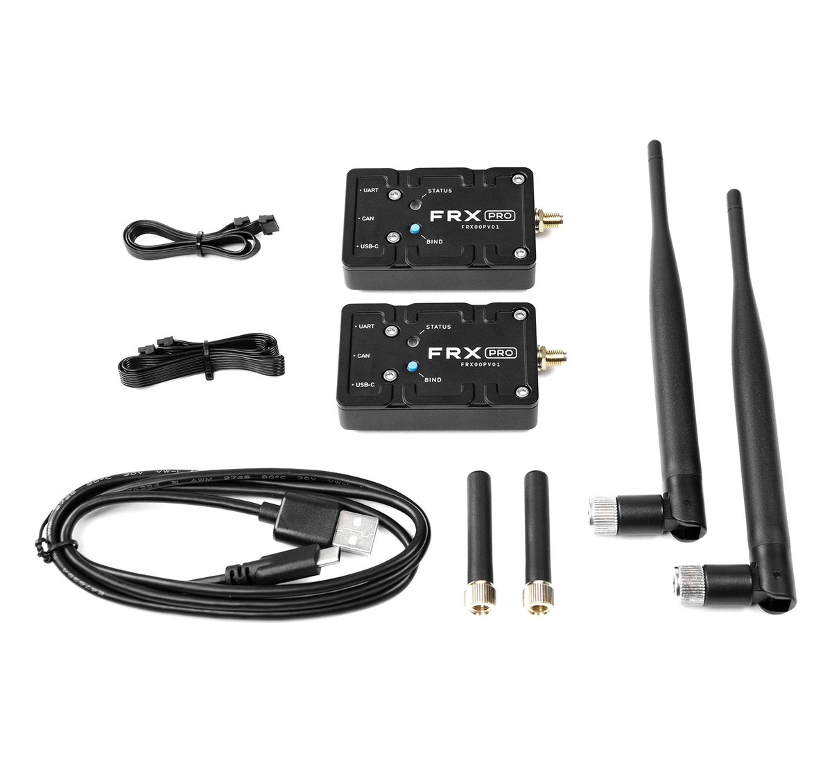 The FRX Pro Wireless Control from FREEFLY is designed to be used with the MōVI Pro, MōVI Carbon, or MōVI XL controller. It supports a range of over 5000' depending on the signal power settings, RF environment, and line of sight. The FRX Pro modules are Pop-n-Lock ready for easy installation. It has UART, CAN, and USB Type-C connections. Two 11.8" COM cables, a USB Type-A to Type-C cable, a D-Tap to FRX cable, two 5 dBi antennas, and two 2 dBi antennas are included.