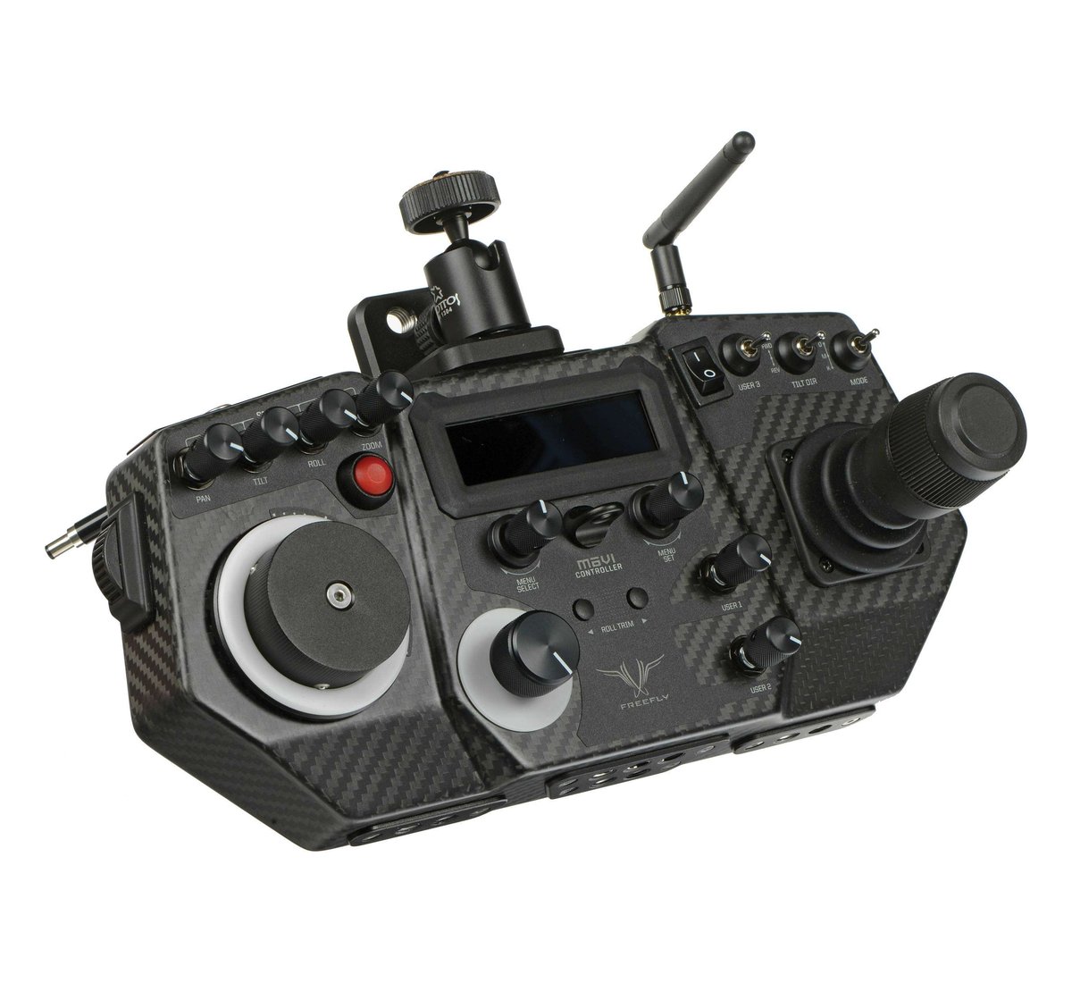 The MoVI Controller from FREEFLY is a professional-grade remote system that allows a MoVI operator full control over pan, tilt, and roll. Compatible with the MoVI M5, M10, and M15 stabilizers, this controller uses telemetry from the MoVI and allows the user to access MoVI configuration menus to enable on-the-fly adjustment of key MoVI parameters. The MoVI controller also simplifies the remote control station by providing power for an LCD monitor and wireless video system. It is powered using a single V-mount battery (not included), which can also power the controller, monitor, wireless video system, and additional 5 or 12 VDC accessories. An optional Follow Focus Upgrade Kit is available for use with Redrock and Hocus Products Axis1 systems.