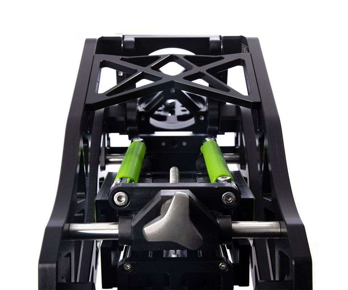 Mounting the Hybris shock absorber is as simple as clamping it on to a standard speed rail. You build a rig onto your vehicle, using standard grip components like speed rail and clamps. Then you simply clamp your Hybris on there, with two or four single clamps at the back of the shock absorber.