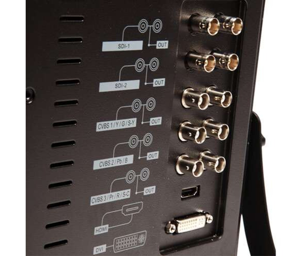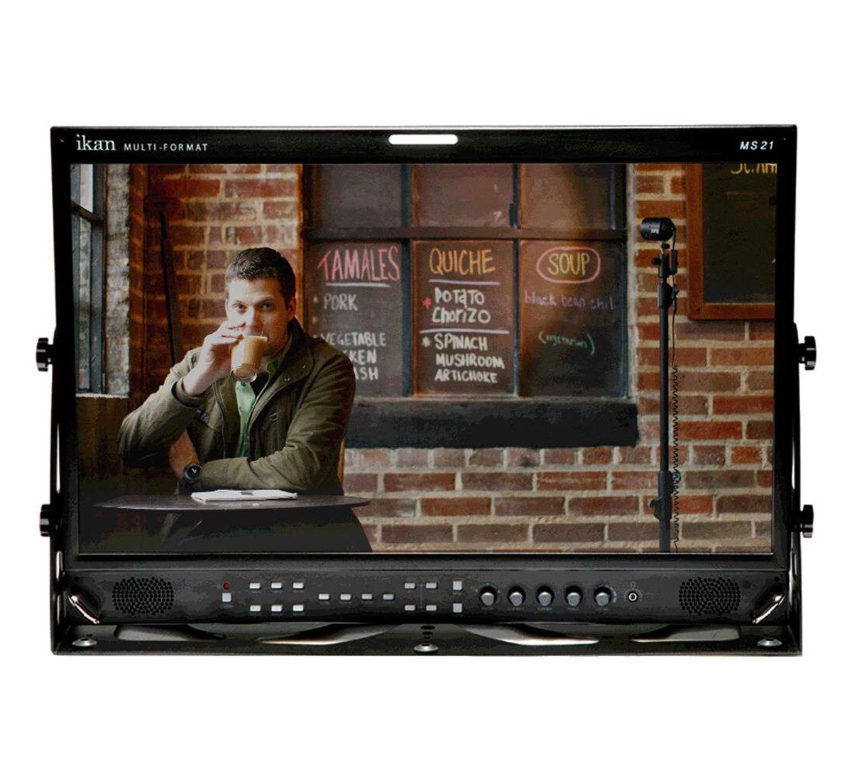 Suitable for both location and studio work, ikan's 21.5" 3G-SDI/HDMI Studio Monitor features a native 1920 x 1080 IPS LCD panel and loop-through SD/HD/3G-SDI and component/composite/S-video inputs/outputs, as well as HDMI and DVI inputs. The removable desk stand features three 1/4"-20 threaded mounting holes that provide a variety of mounting possibilities. The 3G-SDI input loops through to the 3G-SDI output, so you can easily display your video and send it downstream without requiring a splitter. You can input HD component through the 3BNC connectors, which are also loop-through. The monitor supports composite and S-Video signals, and it can accept digital as well as SD video (as NTSC and PAL).