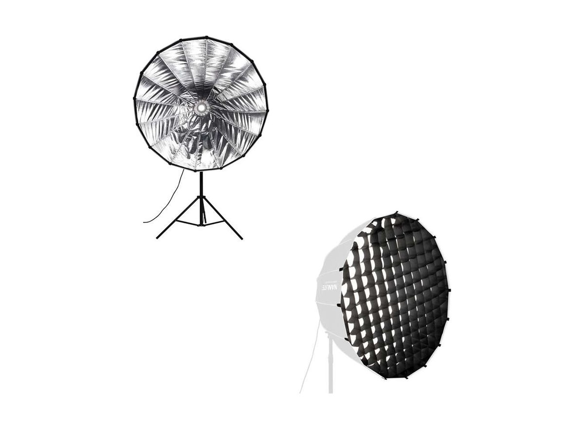 Ideal for portraits, headshots, interviews, and fashion, the 120cm Para 120 Softbox with Bowens Mount from Nanlite is a 16-sided hexadecagon-shaped modifier. The structure of the Para 120 is fortified by 16 durable support rods, while its silver interior maximizes your light source's output. It offers focused, soft output with a punchy, crisp edge that lends dimension and detail to your subject as well as natural-looking catchlight in their eyes. Additionally, the parabolic shape of the modifier renders significant falloff at the field edge and therefore an enhanced degree of directional control, decreased spill light, and easy feathering. The Nanlite SB-PR-120-Q doesn't have to attach or remove any of the individual rods and can start shooting in seconds.