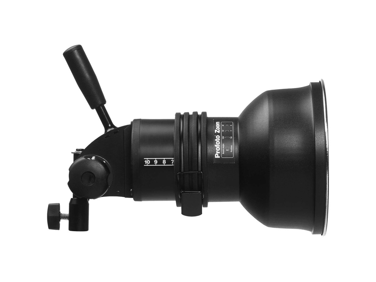 Comes with a Zoom reflector. Compatible with the entire range of Profoto's Light Shaping Tools.
