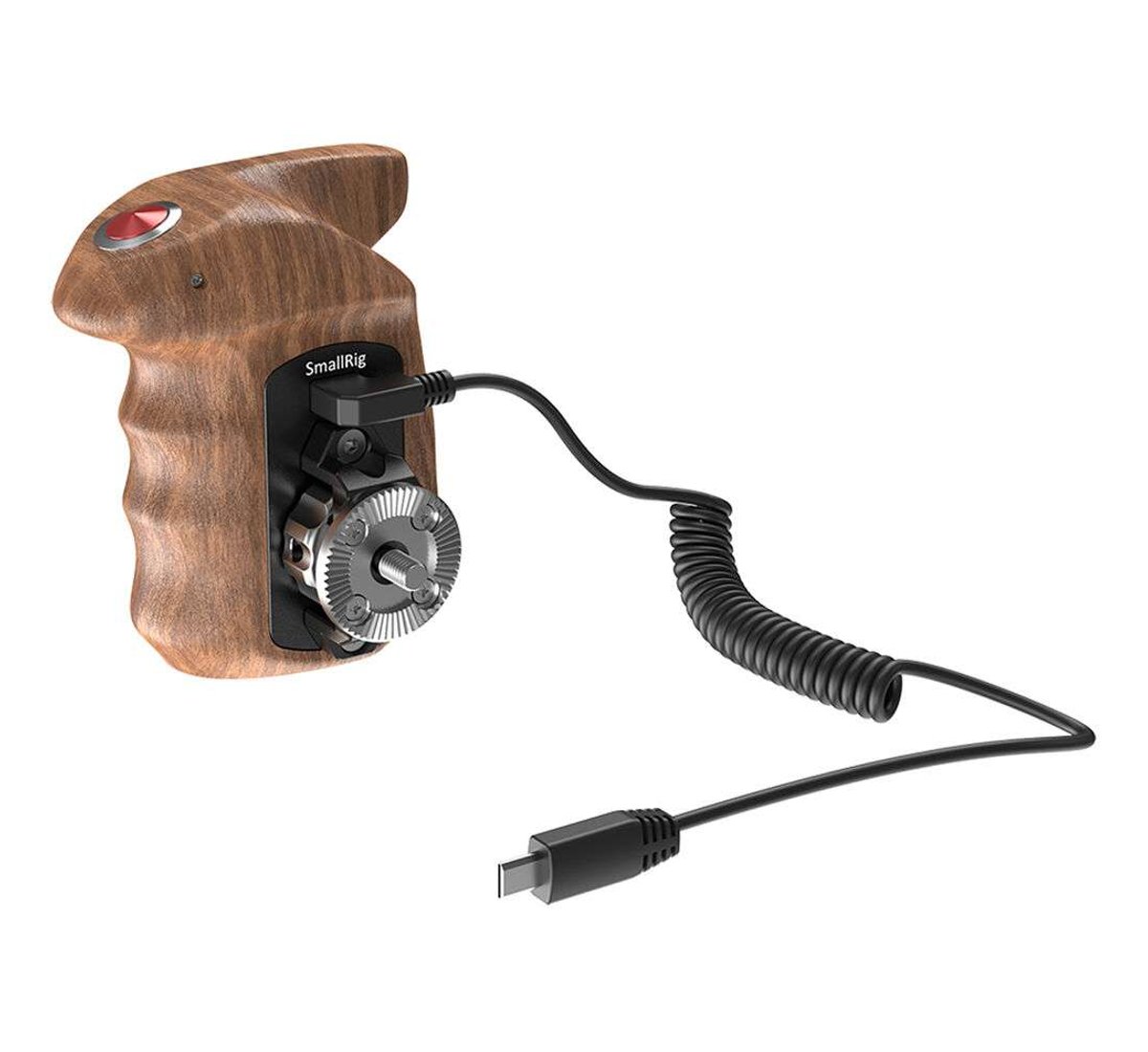 Add a handgrip with start/stop capability to your Sony mirrorless camera rig with this Right-Side Wooden Handgrip with USB Start/Stop from SmallRig. The handle provides a right-handed grip for your camera cage or rig.
