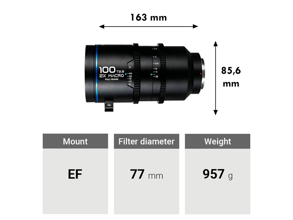 Laowa 100mm T2.9 2x Macro APO Cine is the world’s first 2X maginifcation macro cinema lens on Full Frame camera with 8cm minimum focusing distance. It has 24.4° angle of view and can create a shallower depth of field. A unqiue lens to shoot jaw dropping footage with incredible details of the object.