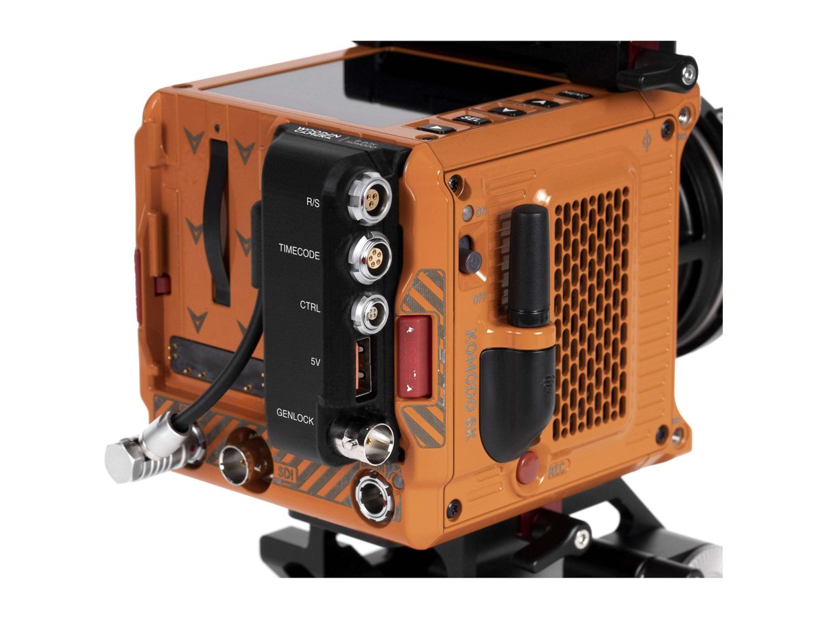 The B-Box for RED KOMODO from Wooden Camera is an EXT port breakout box for the KOMODO camera. Use it to add run/stop, timecode, control, 5V USB, and genlock ports to your KOMODO camera rig.