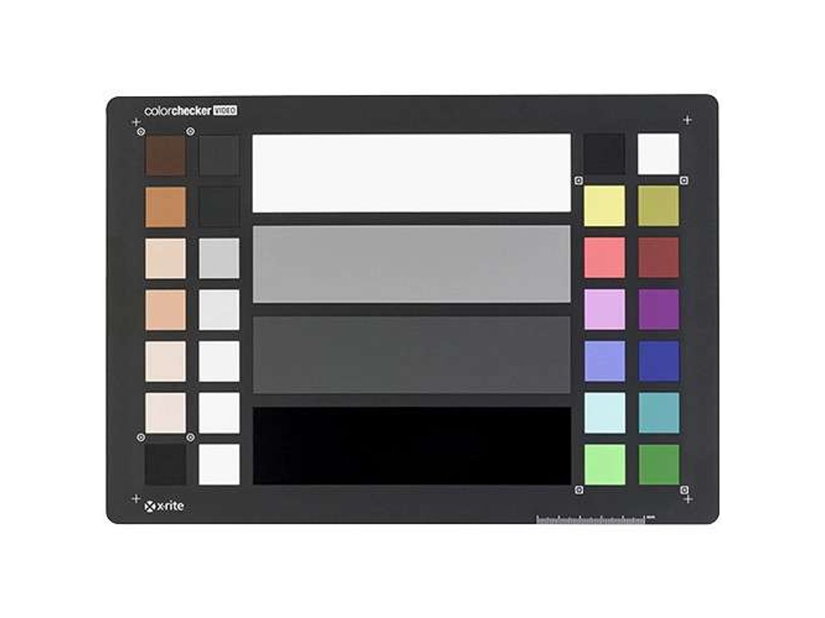 The included color calibration chart contains an updated design philosophy from the standard charts that were developed for print and still photo work. The grayscale provides white, black, dark gray, and 40 IRE exposure patches, allowing you to adjust your lighting to protect highlights from clipping, while maintaining detail in the shadow areas. The color chips on the side of the grayscale contain columns of targets, which display vertically on a waveform monitor, for improved readability. The white target is a 60% target, providing an even brightness that makes setting white balance consistent across different lighting conditions. The chart is large enough to fill your frame in close-ups or be visible in a wide shots.