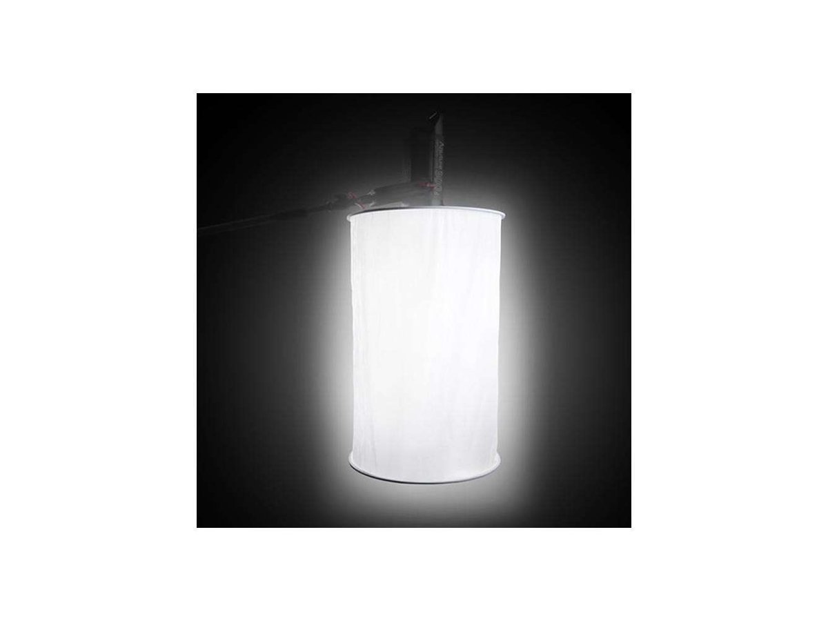 Compatible with Aputure LS 120 and 300 series LED lights, or any LED light with a Bowens front accessory mount, the Space Light is commonly hung (often with several space lights) on set or in a studio to fill the space with general soft illumination. The 28.5" long translucent modifier has an 18" diameter and a cylindrical shape with an open bottom to allow some light to reach the floor. The Space Light ships with a side reflector to provide some degree of control and create a ratio of output from one side to the other.