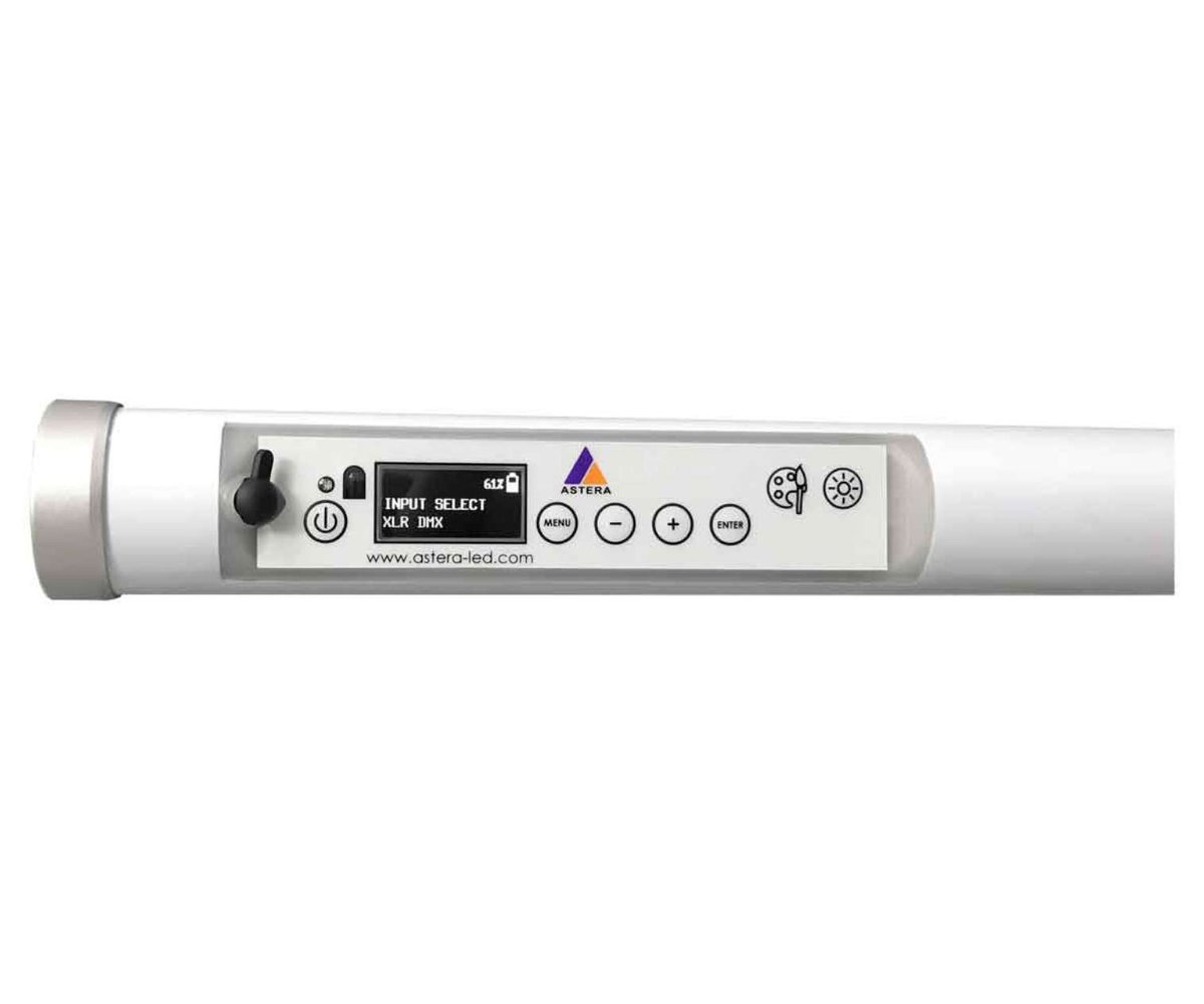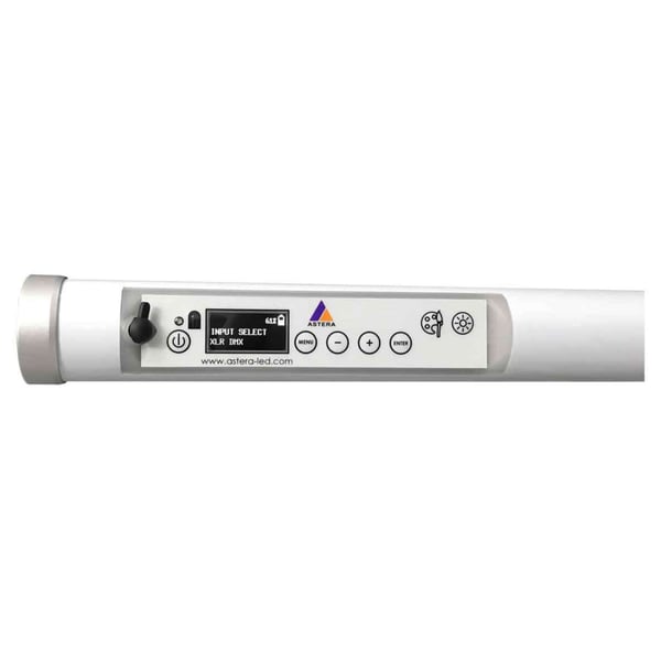 With a wide 120° beam spread, the Astera TitanTube RGB LED Light is ideal for creating a soft direct light on your subject for use as an accent light or design element on location or on set. Suitable for cine, theatrical, and event productions, the wireless tube is powered by an integrated LG Chem Li-ion battery that will give you 20 hours of runtime on a three-hour charge. The light features 16 LED emitters in a 40.7" long tube that you can mount onto a set or on a stand, hang from a grid, or even hold in your bare hand. The TitanTube has an impressive CRI/TLCI rating of 96/96 indicating high accuracy in the rendition of color. The TitanTube uses RGB, mint, and amber LEDs as well as hue, saturation, and intensity control to access millions of custom colors.