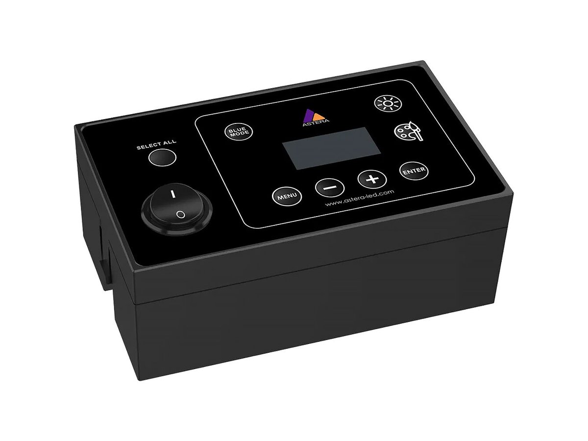 The QuikSpot features onboard controls to offer swift adjustments over brightness, HSI, and colors. The light is also controllable via wired or wireless DMX/RDM as well as via the AsteraApp. The fixture has 5-pin XLR in/out sockets for wired DMX connection. For wireless DMX, the QuikSpot is compatible with LumenRadio with optional lighting consoles and controllers. The CRMX/UHF wireless range is up to 984' and the Bluetooth up to 9.8'. The separately available PrepBox facilitates configuration when assigning profiles or DMX addresses. Another option is the use of the optional White and FX remotes for quick setting adjustments such as colors, effects, and dimming when the PrepBox is not available.