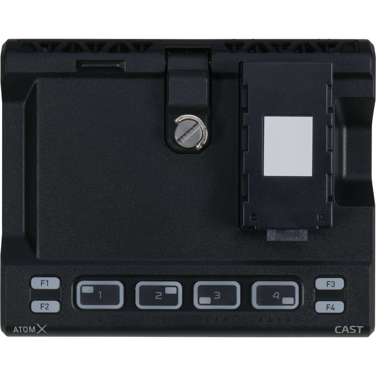 The monitor allows you to preview your broadcast while simultaneously outputting to a recorder, a monitor, a projector, or when using the optional AtomX Connect for live streaming using a computer. It also supports recording output to ProRes and Avid DNx formats. It is compatible with most streaming platforms such as Skype, Zoom, Teams, and more using UVC with the included USB Type-C cable. The CAST is powered using the power adapter included with your Ninja V/V+, and it passes the power on to the monitor through the battery mount.