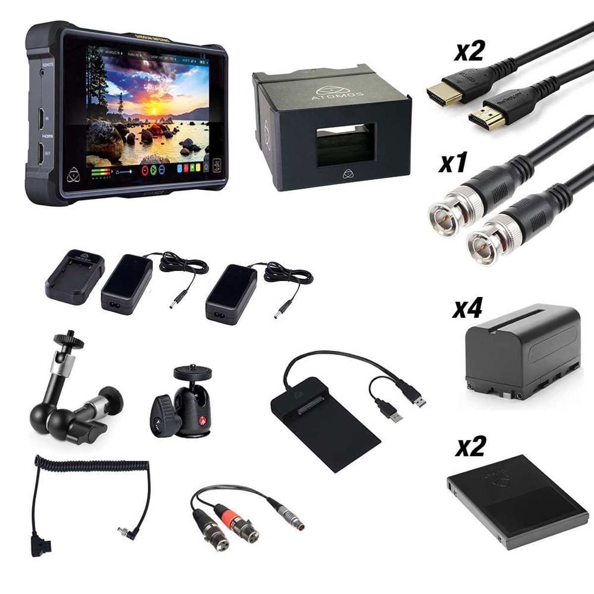 The Atomos Accessory Kit includes everything you'll need for a complete workflow with your Shogun/Ninja Inferno and Flame monitors/recorders.