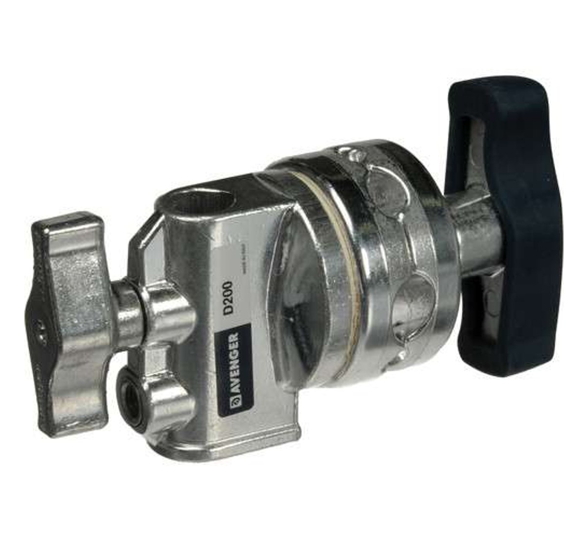 The Avenger D200 2.5" Grip Head is designed to hold grip arms, scrims, flags, etc. The head has a non-slip T-Top rubber grip handle cover to give you a firm grasp on it. It has a 5/8" Baby receiver for light stands and an automotive-quality brake pad for a secure hold on accessories.