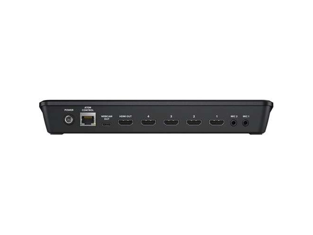 Designed for multicamera live streaming to the internet or broadcast applications, the compact ATEM Mini from Blackmagic Design provides gaming consoles, corporate computer streams, or HD cameras a four-input live production switcher with an integrated control panel. The four HDMI inputs are available on the rear of the chassis and they input up to 1080p60 video. There is also an HDMI output for a projector or external monitor, a USB Type-C output for streaming up to 1080p60 video to a computer, and an RJ45 10/100 Ethernet port for system management, remote control, and upgrades.