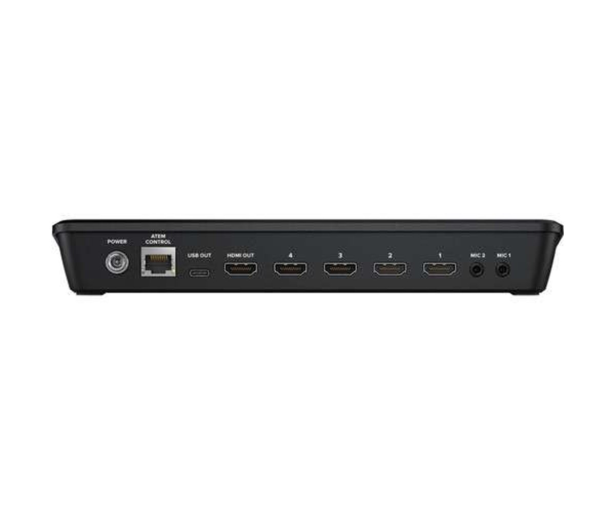Same rear panel as ATEM Mini with added buttons and software features
