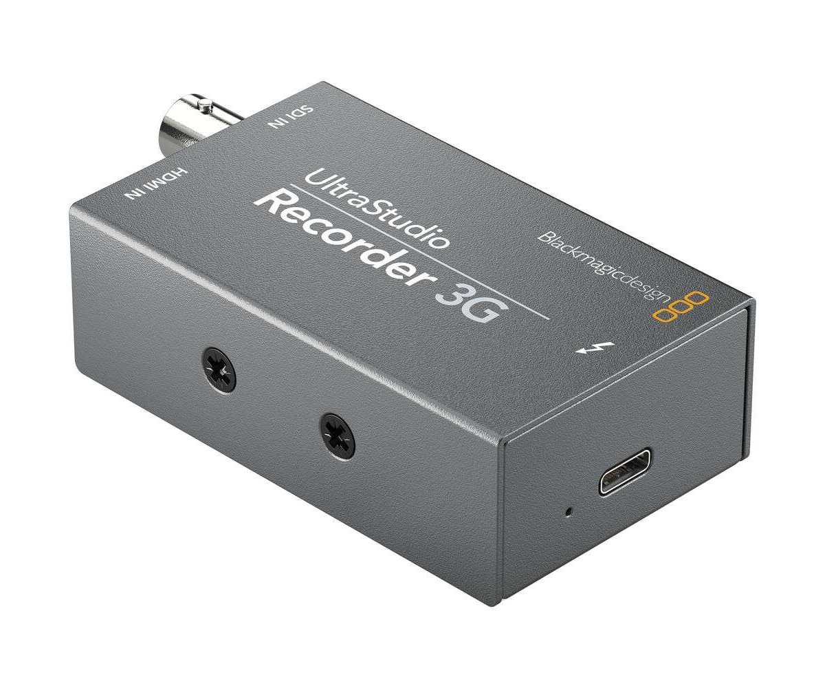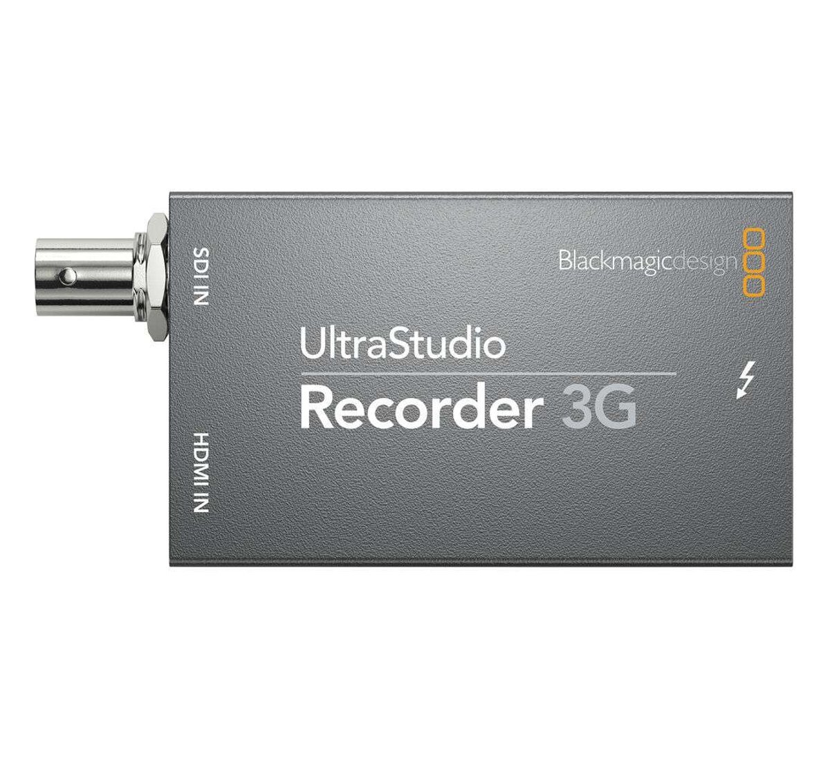 The UltraStudio 3G Recorder from Blackmagic Design enables you to capture or stream video from your camera or other SDI or HDMI source using your computer's Thunderbolt connection. This recorder supports both YUV and RGB video resolutions up to 1080p60 via 3G-SDI or HDMI.