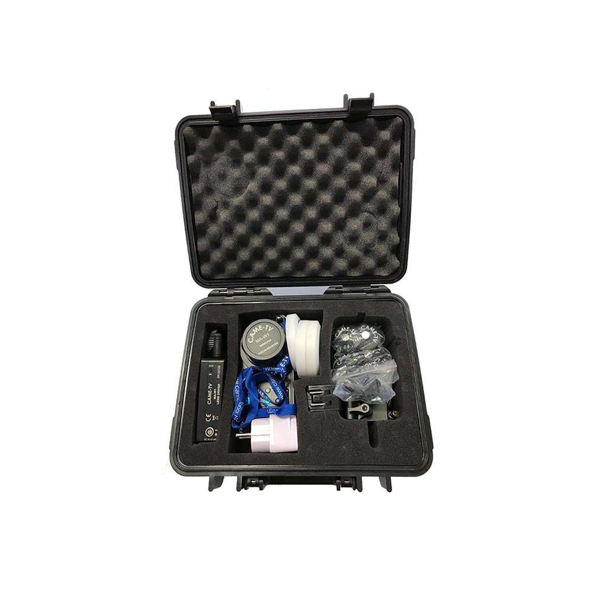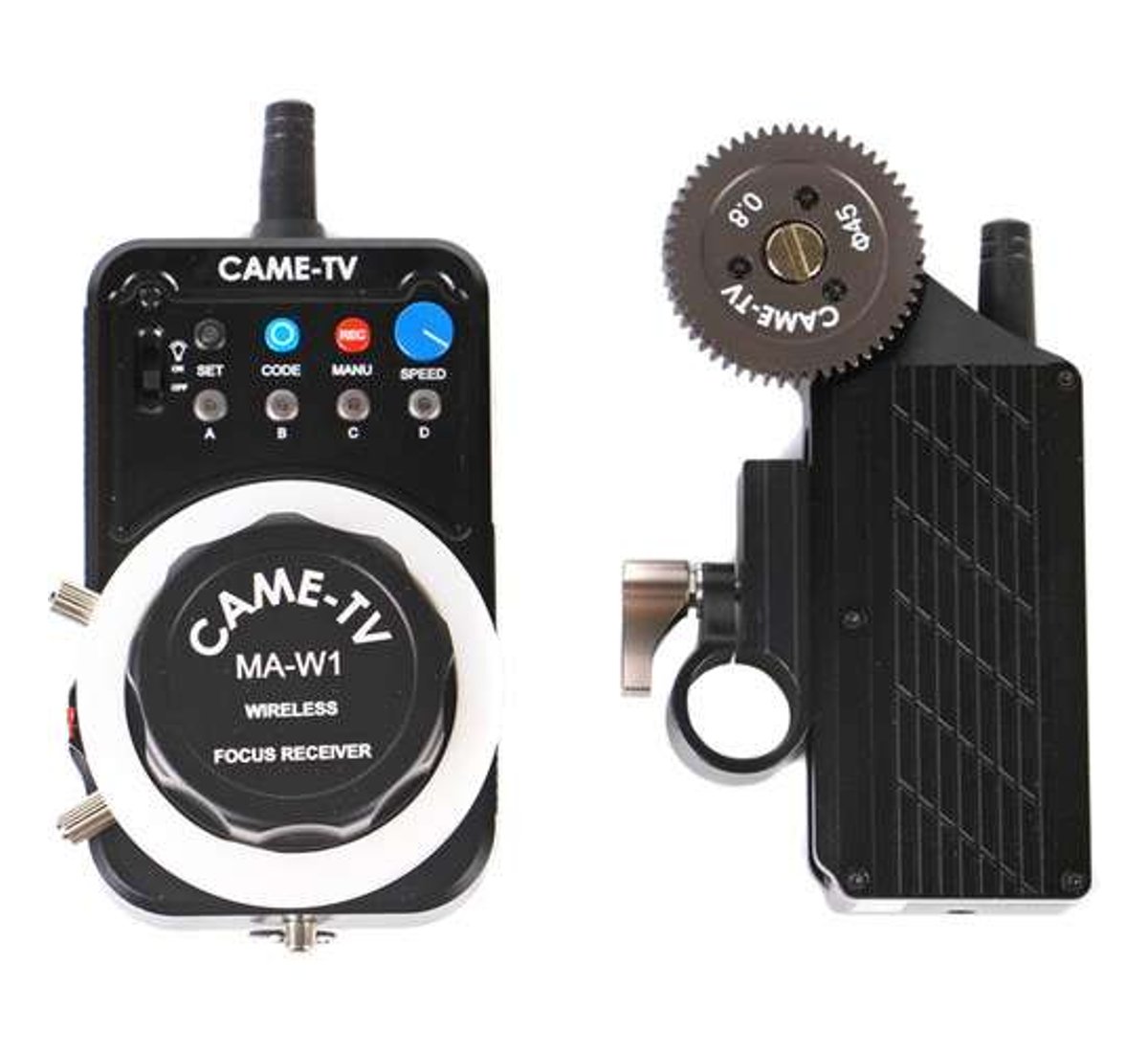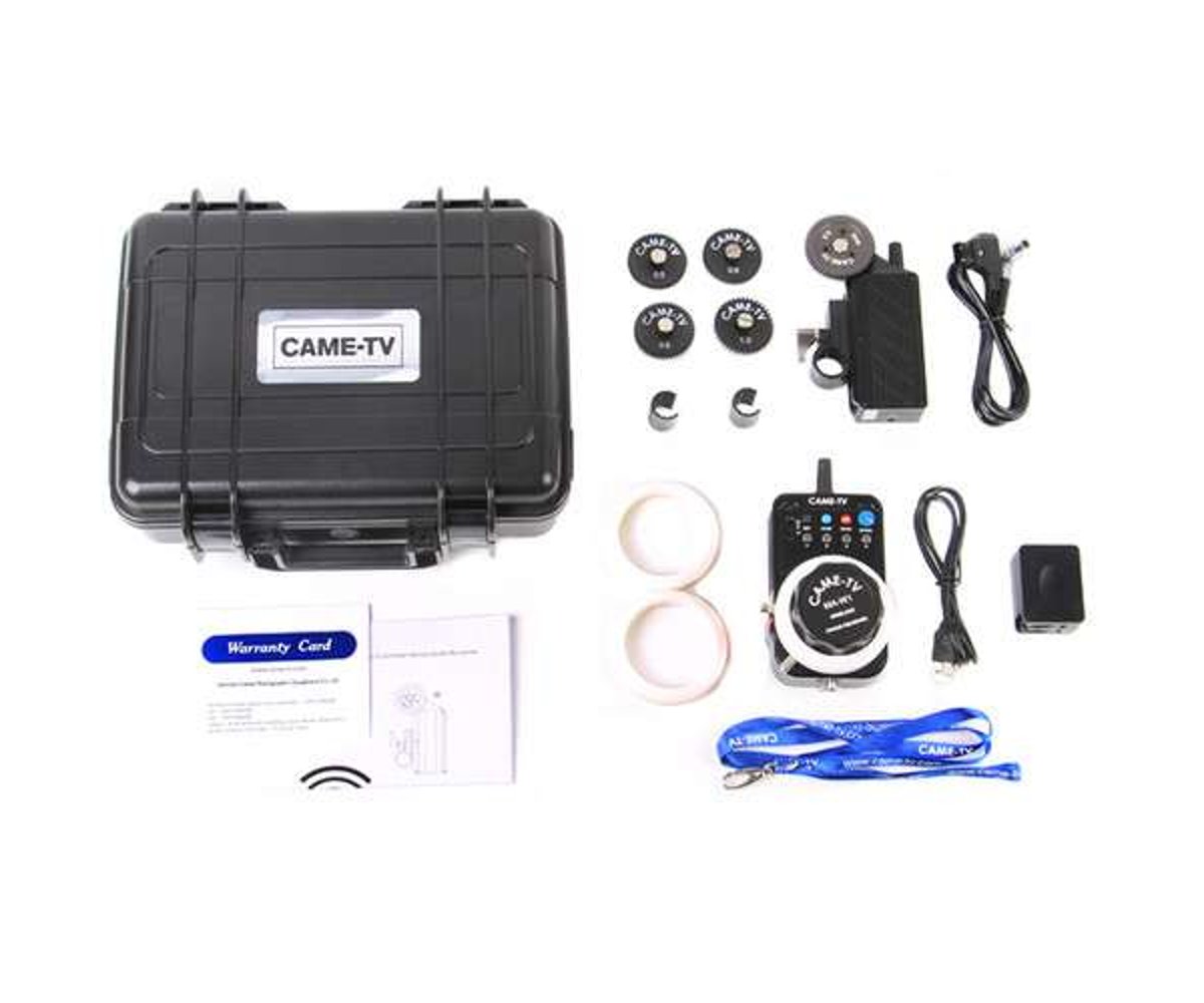 The CAME-TV MA-W1 Wireless Follow Focus Controller allows you to remotely control the focus, iris, and zoom when the camera rig is mounted on jibs, cranes, dollies, gimbals, stabilizer systems, and drones. The wireless control provides precise control for focus pullers. The lens driver with built-in motor mounts on 19mm or 15mm rods. This system is compatible with a wide variety of cameras and lenses, including ARRI, RED, Sony, Canon, Nikon, and Panasonic.