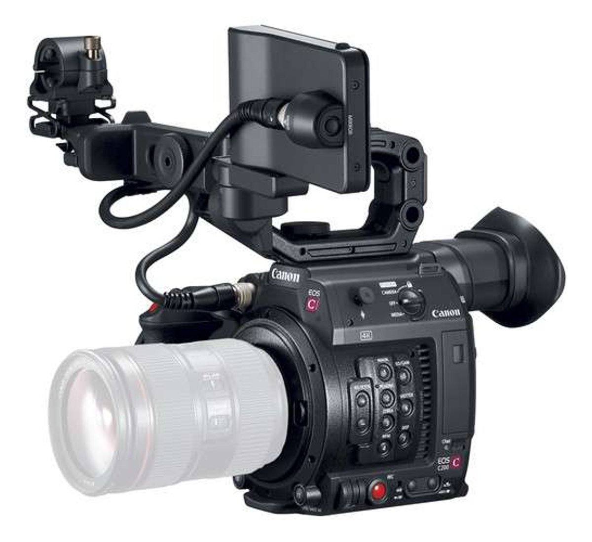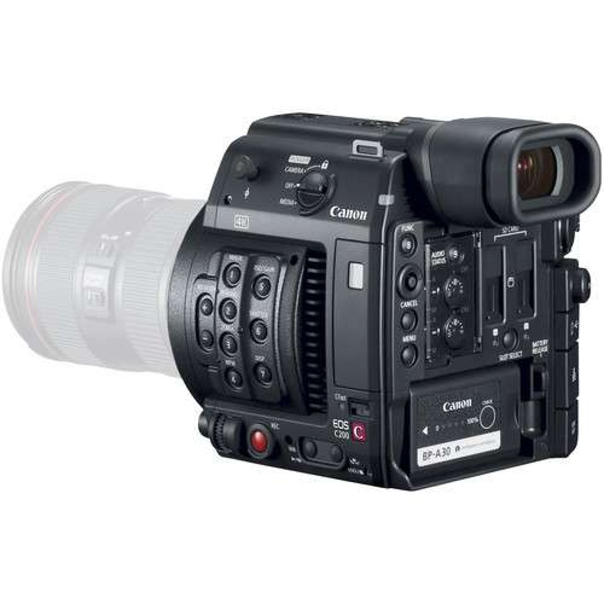 La Canon EOS C200 EF Cinema Camera integra un sensore CMOS Super 35mm con doppi processori d'immagine DIGIC DV 6, permettendo l'acquisizione in DCI 4K, UHD e Full HD. Un highlight tecnico principale è la registrazione interna in Canon Cinema RAW Light su un singolo slot CFast 2.0, affiancato da due slot per card SD per l'acquisizione in UHD 4K/HD MP4. Il sistema utilizza la tecnologia Dual Pixel CMOS AF per l'autofocus a rilevamento di fase continuo, offrendo l'impostazione AF Lock e la compatibilità con lenti EF-mount, incluse le ottiche cinema CN-E e la serie STM.