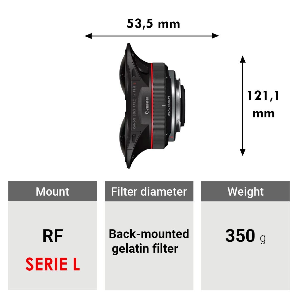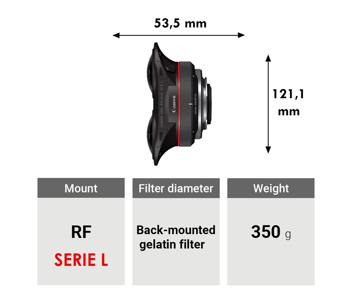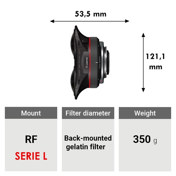 Unlock new dimensions in visual storytelling with the RF 5.2mm f/2.8 L Dual Fisheye 3D VR from Canon. Currently compatible with the EOS R5 Mirrorless Digital Camera, this L-series lens is the world's first digital interchangeable lens that can capture stereoscopic 3D 180° VR imagery to a single image sensor. The dual high-performance L-series fisheye lenses combine imagery onto a single image sensor delivering impressive results to a single file. This helps simplify your workflow by eliminating the need to sync and stitch multiple video files. Creators can go from traditional stills or video shooting to stereoscopic 3D capture with a simple lens swap, and the pairing of this lens with the EOS R5 provides for high resolution video recording at up to DCI 8K 30fps and DCI 4K 60 fps.