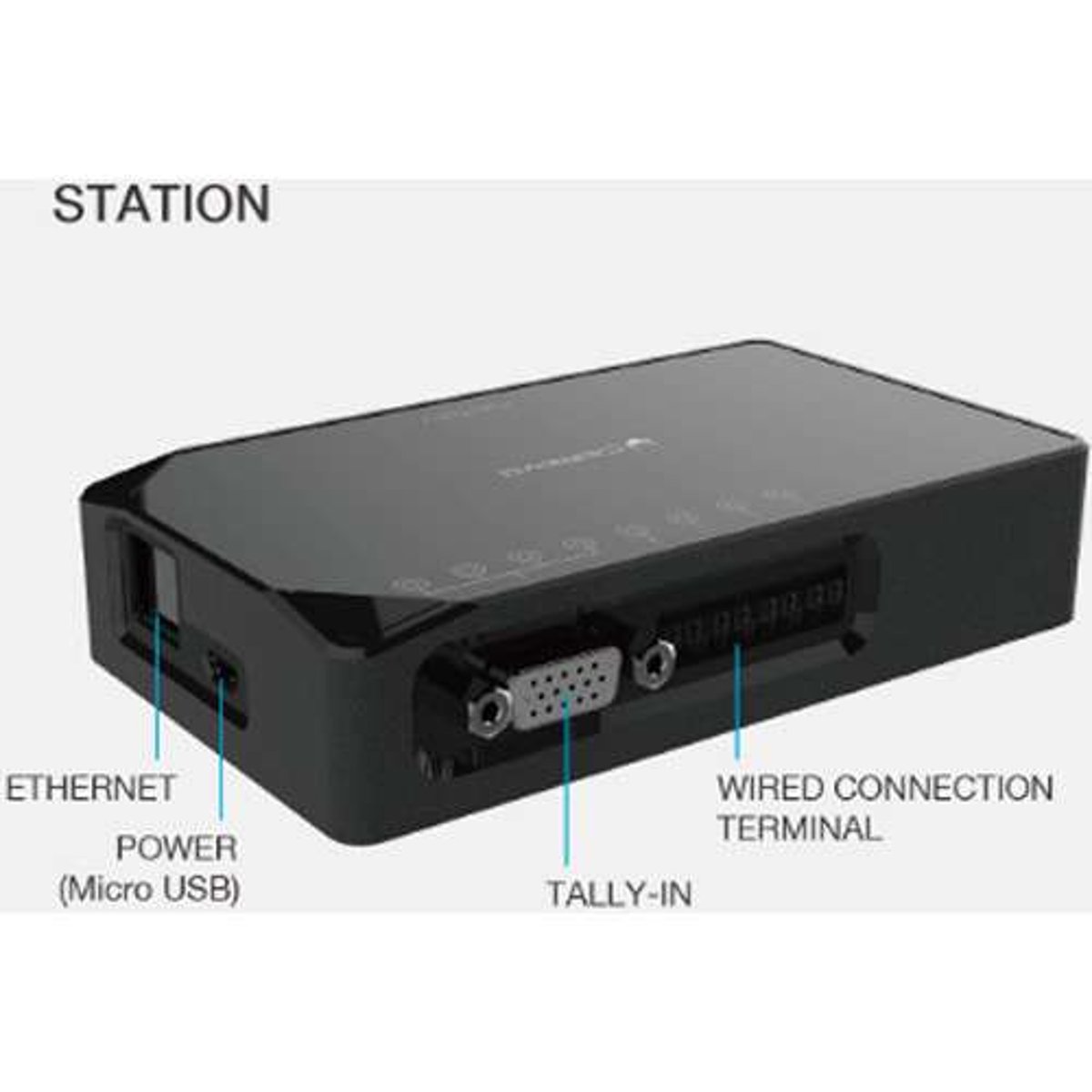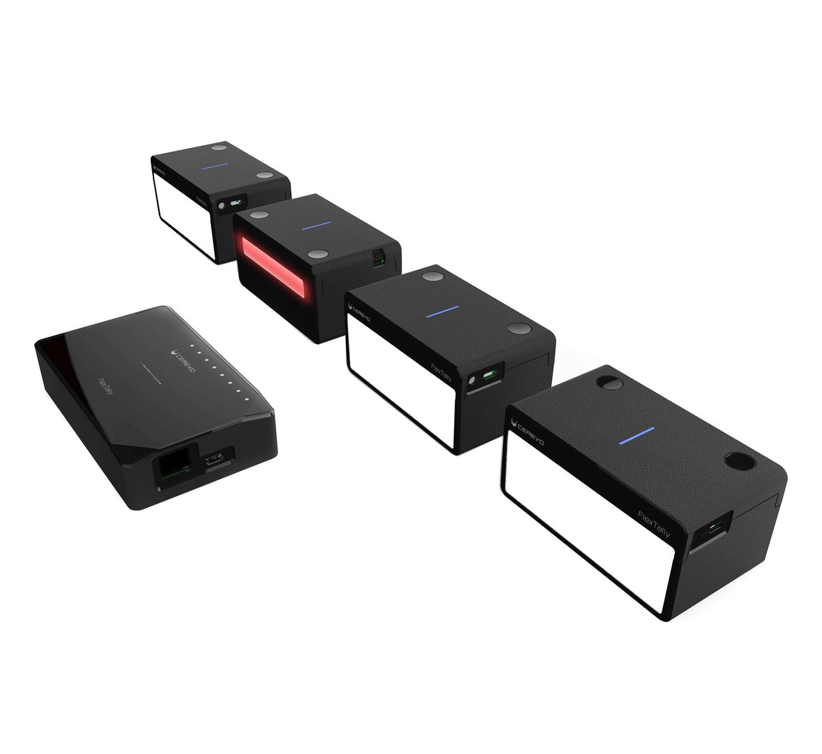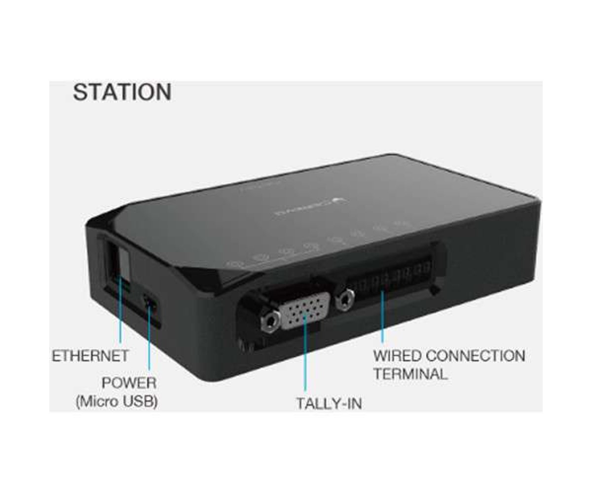 The Cerevo FlexTally is designed to provide a simple-to-operate multi-camera tally solution for small studios and beyond. An included station unit connects to a Cerevo LiveWedge or third-party switcher (see more below) over Ethernet or GPIO, and four lamp units connect to your cameras via tally outputs and work wirelessly from up to 328' away from the station unit. The station unit is AC-powered and the lamps have built-in batteries that run from 6-12 hours depending on brightness. Without any software required, you can change the assigned lamp ID and other settings via a function button on the station unit.