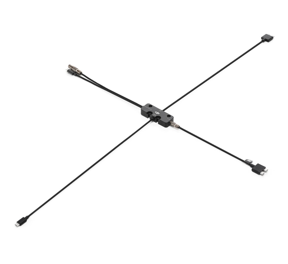 Forgo a bulky V-mount battery and power your DJI ecosystem from your RS 3/4 Pro gimbal using the DJI Focus Pro LiDAR Range Finder to Transmission Cable Hub. With five integrated cables, the hub facilitates power and control connections for stabilization, remote monitoring, and autofocus systems, all in tandem with your gimbal configuration. A dual USB-C connector inserts into your Focus Pro LiDAR range finder. USB-C and LEMO-type cables on another end of the hub connect your video transmitter unit.
