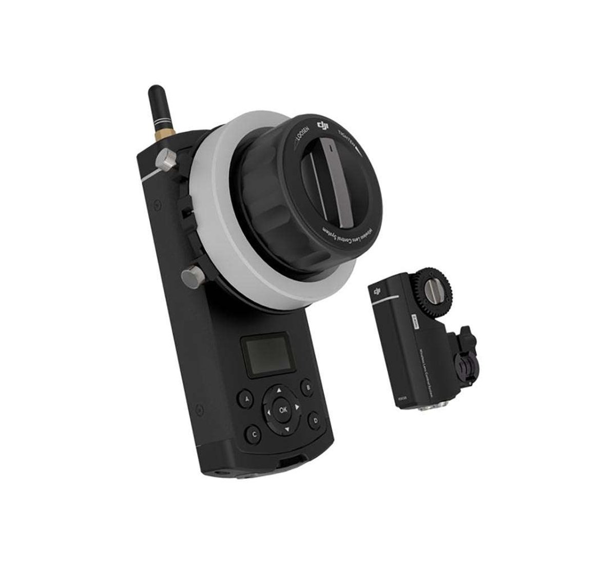 Pull focus from up to 300' away with the DJI Focus wireless lens control system. This system is composed of a remote controller hand unit, a single motor, connection cables, as well as other extras, and fits inside an included hard case. While the Focus can function as a standard remote follow focus, it has a few tricks up its sleeve; using a separate cable, you can control the focus or iris of the lens mounted to your Inspire drone's Zenmuse X5 or X5R gimbal.