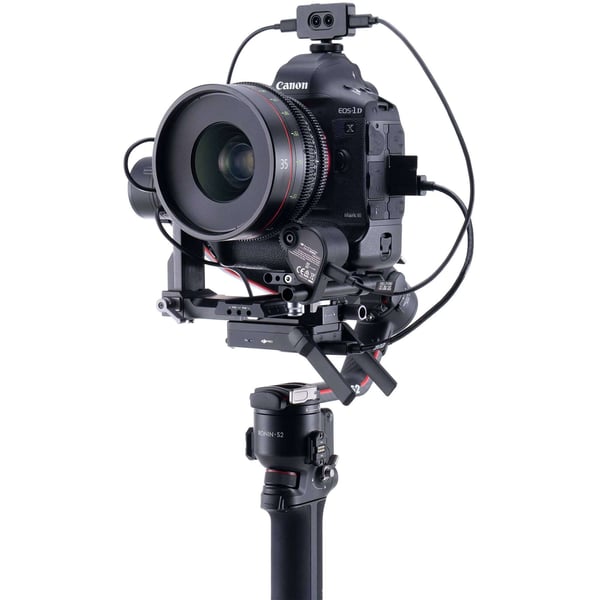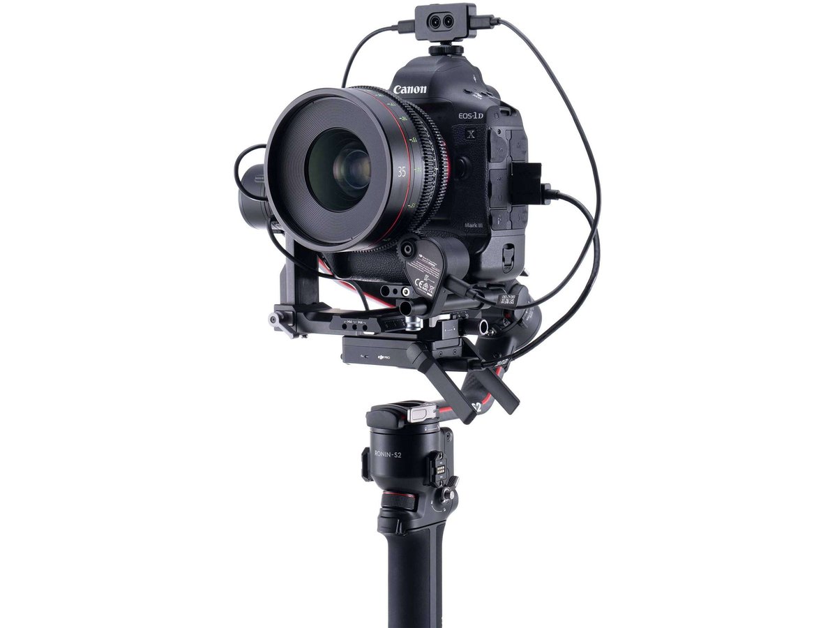 The Ronin 3D Focus System allows you to achieve continuous focus with manual lenses used with the DJI RS 2 gimbal. It's designed to attach to the top of your camera via an included shoe mount and to automatically detect the distance between the lens and subject to enable a center AF point. Two USB cables are included for connecting it to the camera and gimbal.