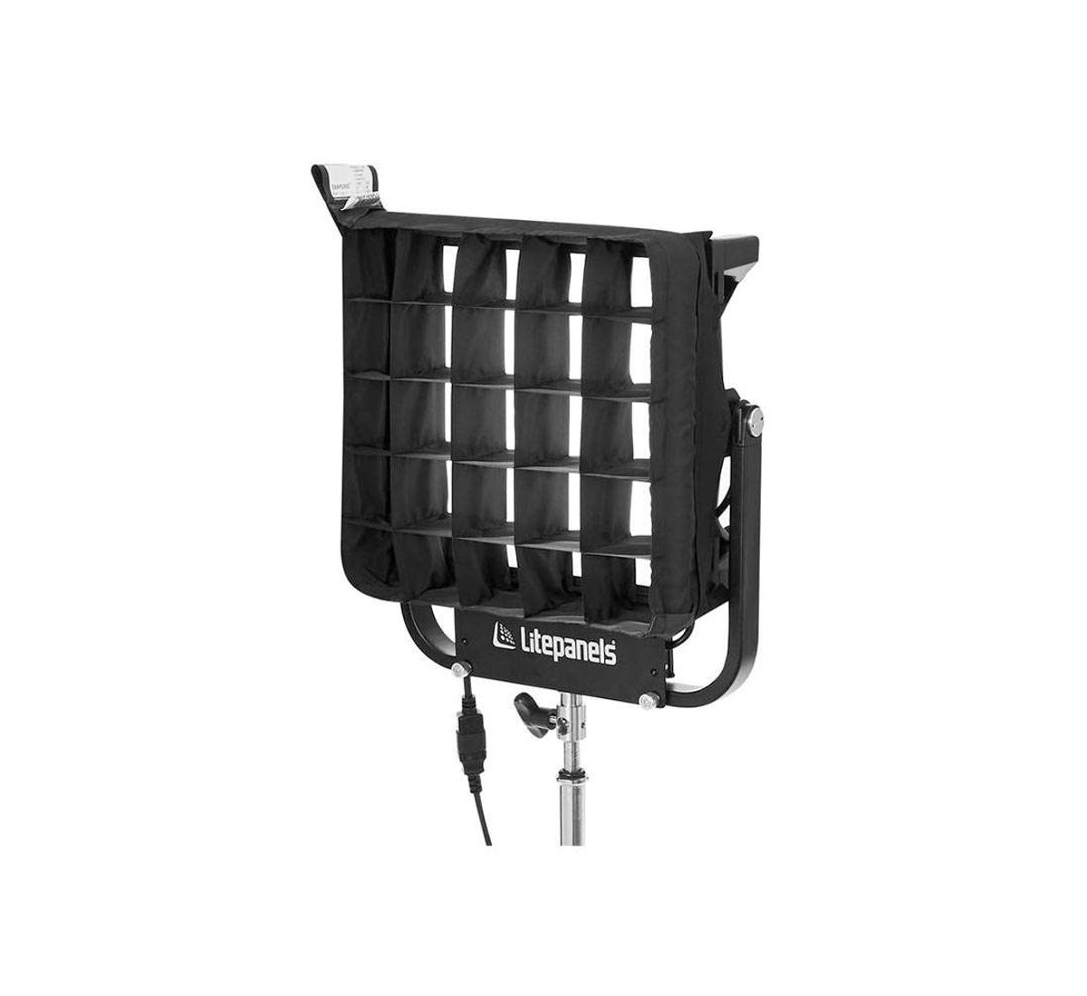 The DoPChoice Snapgrid 40 Deg. Direct Fit LitePanels Gemini 1x1 attaches directly to the Gemini 1x1 fixture. The 40 Degree beam pattern controls and directs the soft light source created by the Gemini. Prevents your entire set from being washed with light.