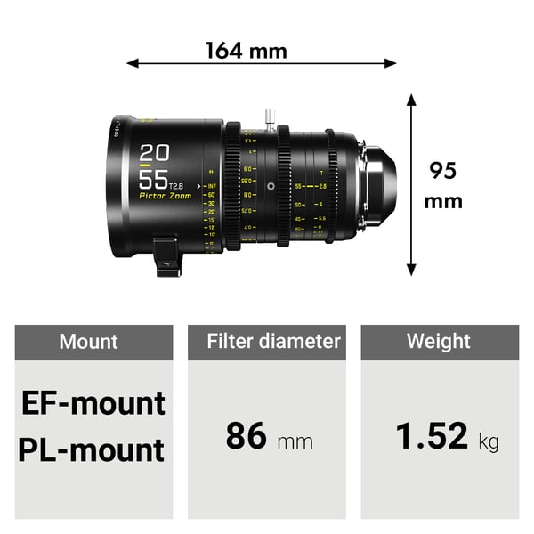 DZOFilm Pictor 20 to 55mm T2.8 Super35 Parfocal Zoom Lens (PL Mount)