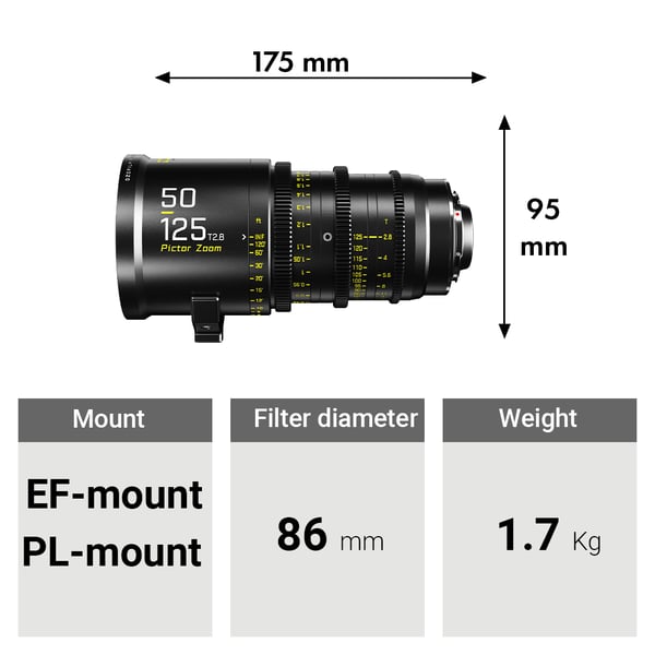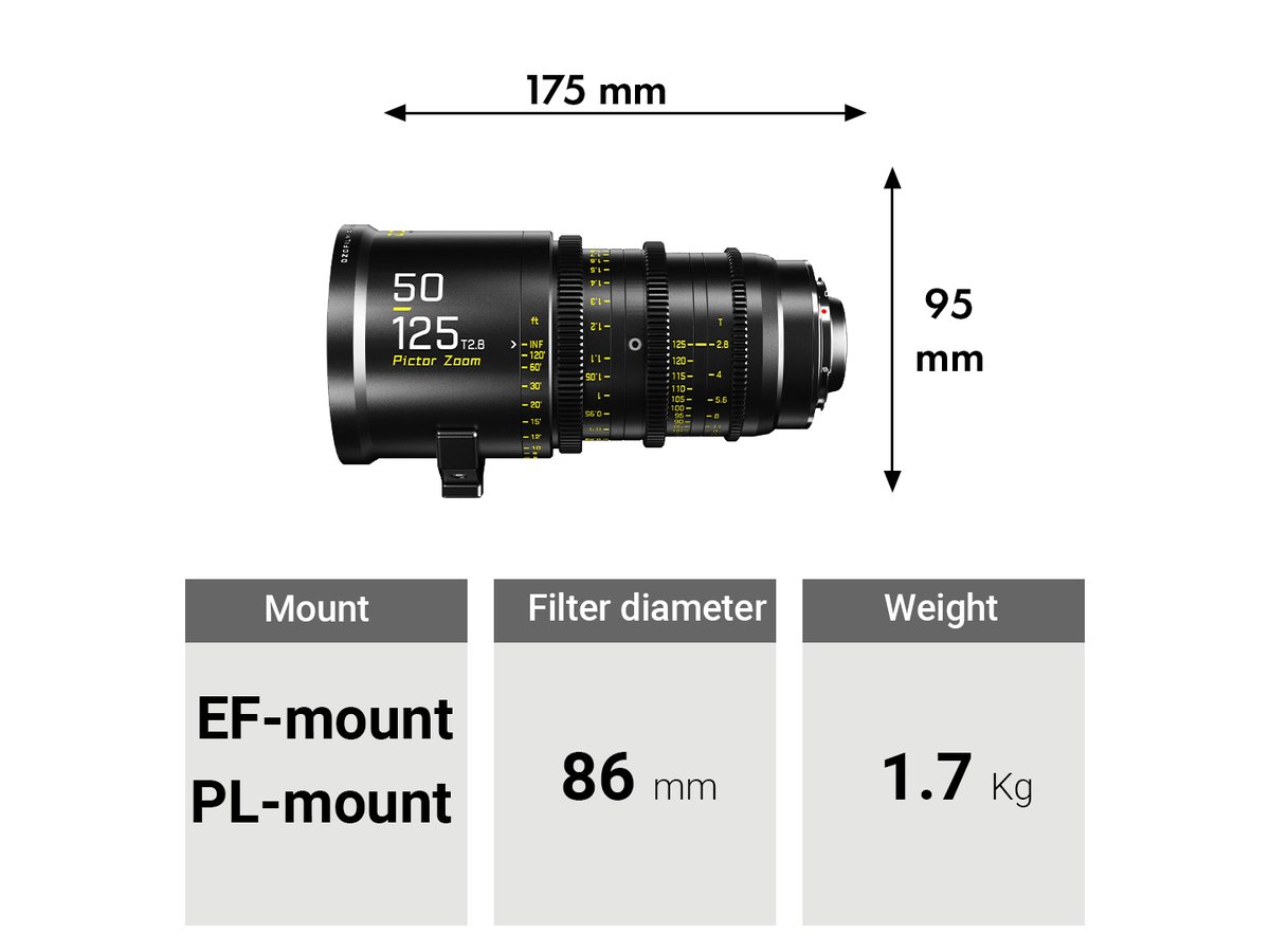 DZOFilm Pictor 50 to 125mm T2.8 Super35 Parfocal Zoom Lens (PL Mount)