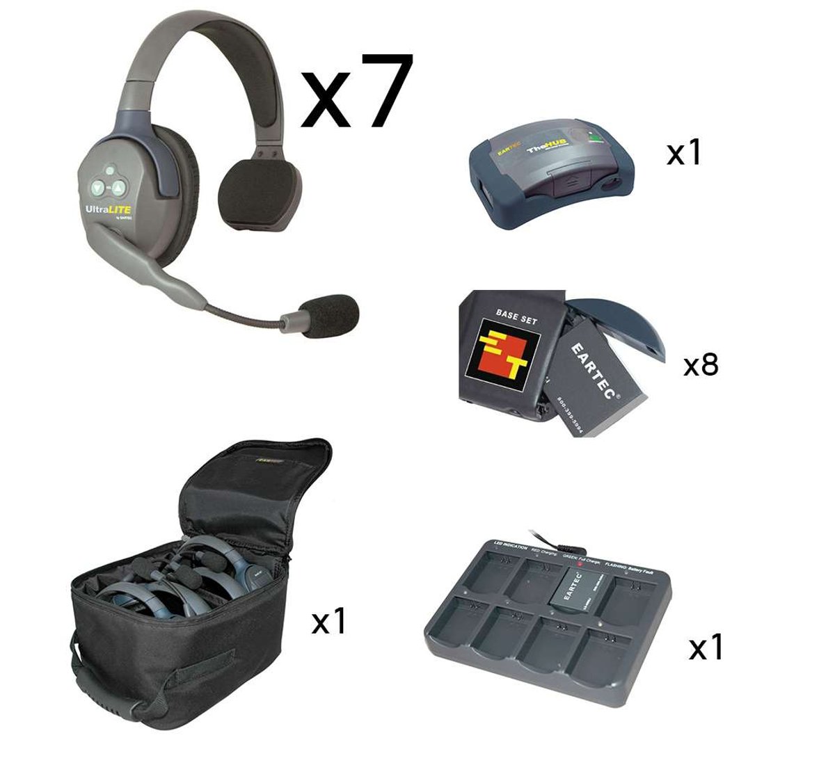 Eartec UltraLITE 7 Person System with 7 Wireless Single Ear