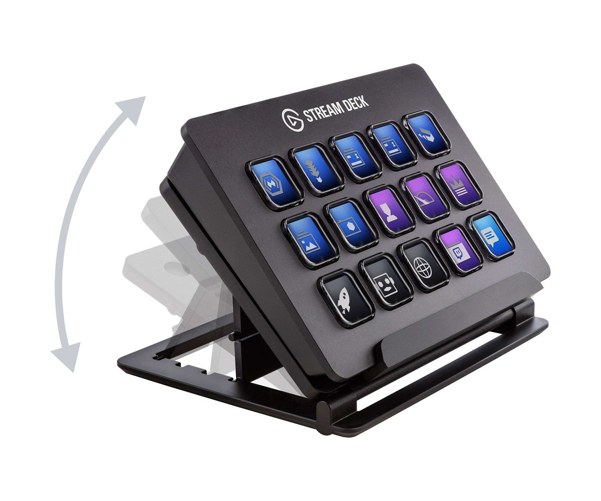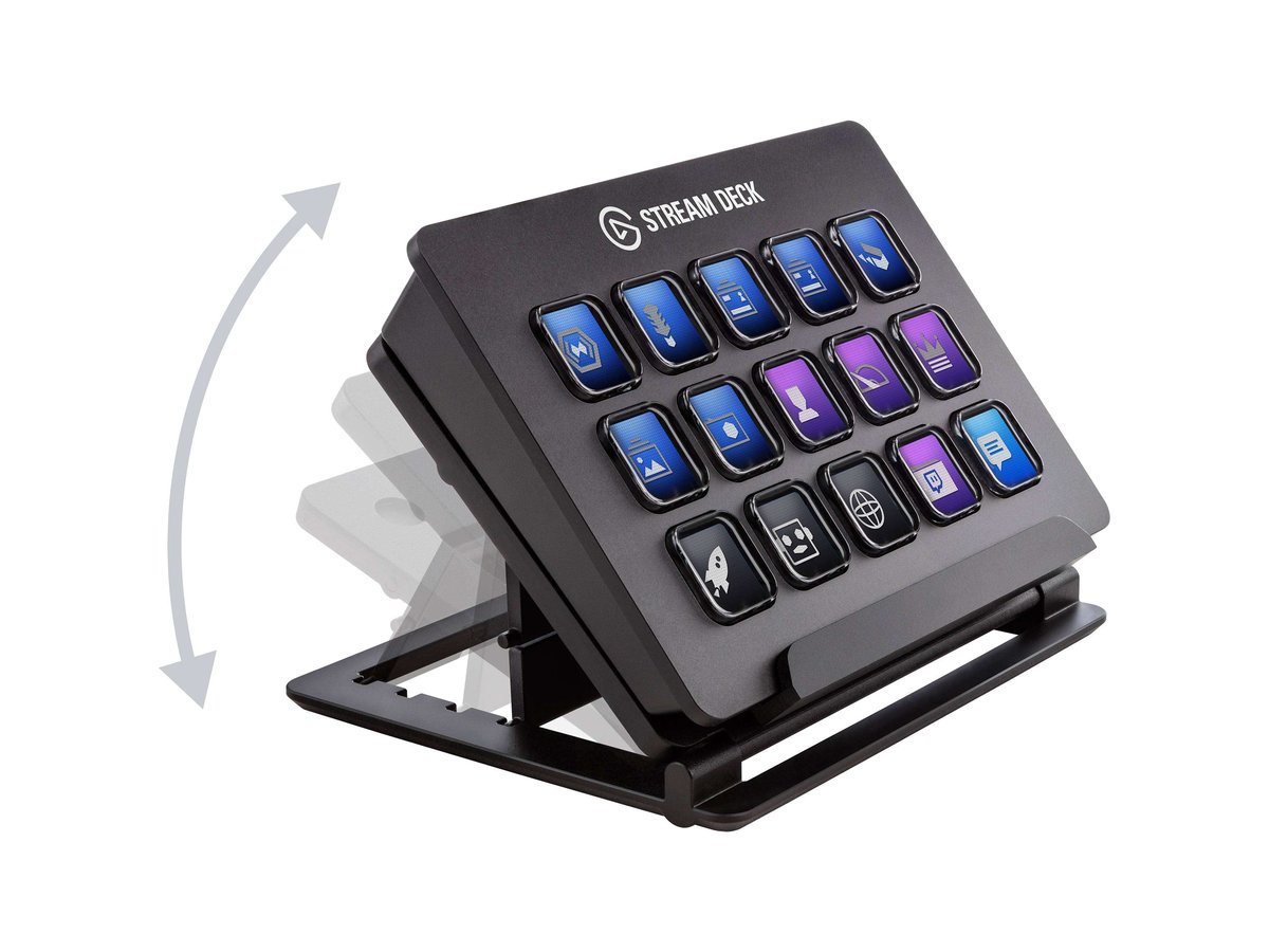 If you're an online streamer who broadcasts using Elgato Game Capture, OBS, Twitch, Twitter, TipeeeStream, XSplit, YouTube, Mixer, and more, streamline your streaming setup using the Stream Deck from Elgato Systems. The Stream Deck integrates your tools and helps to automatically detect scenes, media, and audio sources, enabling them to be controlled with the tap of a key. 15 LCD keys can be programmed to launch an array of actions, while a one-touch, tactile operation allows you to switch scenes, launch media, adjust audio, and more. Streams can also be personalized with GIFs, images, videos, audio clips, and intro and outro graphics. The Stream Deck is compatible with macOS 10.11 and later, as well as Windows 10 (64-bit). Connectivity with your host system is accomplished using an integrated USB 2.0 cable. Finally, an adjustable stand is included to keep the Stream Deck within easy reach.