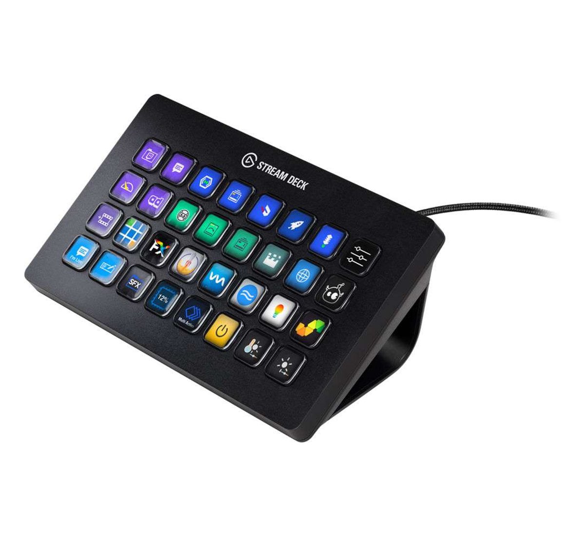 The Stream Deck XL integrates your tools and helps to automatically detect scenes, media, and audio sources, enabling them to be controlled with the tap of a key. 32 LCD keys can be programmed to launch an array of actions, while a one-touch, tactile operation allows you to switch scenes, launch media, adjust audio, and more. Streams can also be personalized with GIFs, images, videos, audio clips, and intro and outro graphics. The Stream Deck is compatible with macOS 10.11 and later, as well as Windows 10 (64-bit). Connectivity with your host system is accomplished using the included USB Type-C to USB Type-A cable. Finally, an adjustable stand is included to keep the Stream Deck XL within reach.
