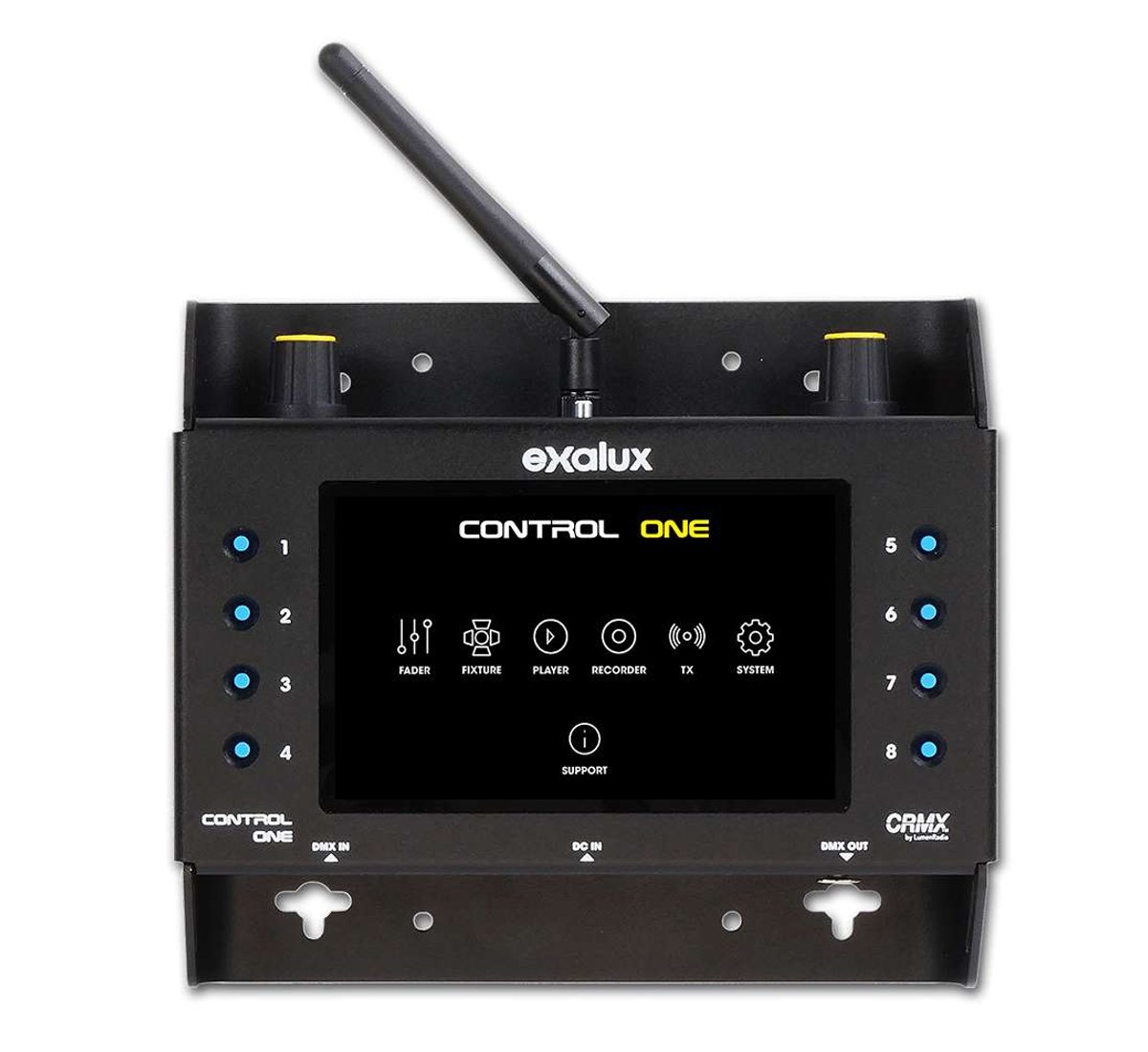 EXALUX™ CONTROL ONE RENTAL is an all-in-one wireless DMX controller making it possible to remotely control the most popular DMX fixtures in a simple and intuitive way.