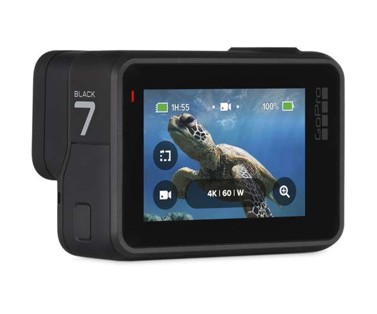 Document your travels and extended adventures with TimeWarp Video, which records super-stabilized, moving time-lapse shots. Choose the SuperPhoto function to apply intelligent HDR, local tone-mapping, or noise reduction for optimal still shots. While the HERO7 Black retains the size of its predecessor, both touch and vocal control have been enhanced. The touchscreen has been streamlined to more closely resemble smartphone navigating; and when your hands are full, 16 voice commands enable you to verbally control the HERO7 Black.