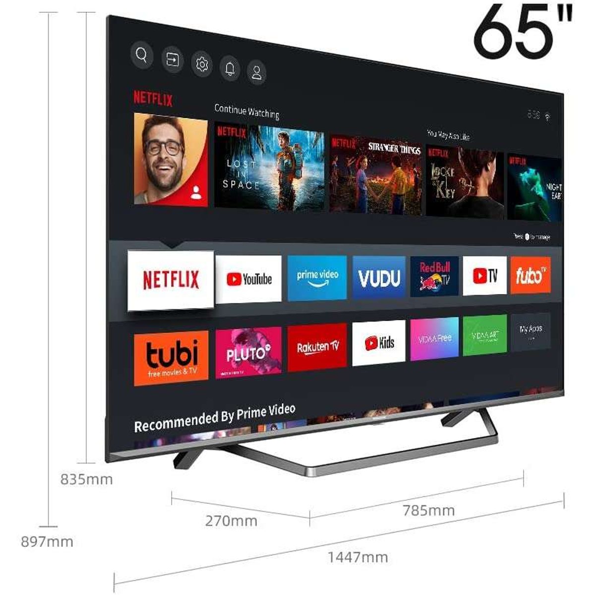 Hisense 65u71qf. Un telaio metallico ultrasottile e quasi invisibile racchiude il pannello con una cornice senza bordi. Anche la parte posteriore è di alta qualità e include una gestione intelligente dei cavi adatto a qualsiasi spazio abitativo. Grazie alla tecnologia doby vision hdr e quantum dot colour lo schermo è in grado di riprodurre colori, contrasto e dettagli in modo estrememente realistico. In aggiunta con la tecnologia full array local dimming, anche i dettagli più fini diventano visibili. Il sistema operativo vidaa u 4.0 ai è in grado si riconoscere le scene della trasmissione che stai guardando e autoregolarsi ottimizzando video e audio, controllo vocale e le più importanti applicazioni disponibili. Il comparto audio ti farà immergere nell’azione con dolby atmos. Il controllo vocale alexa già integrato ti permette di controllare i tuoi dispositivi compatibili. La connessione bluetooth permette il collegamento di qualsiasi dispositivo esterno come soundbar, soundbase o cuffie.