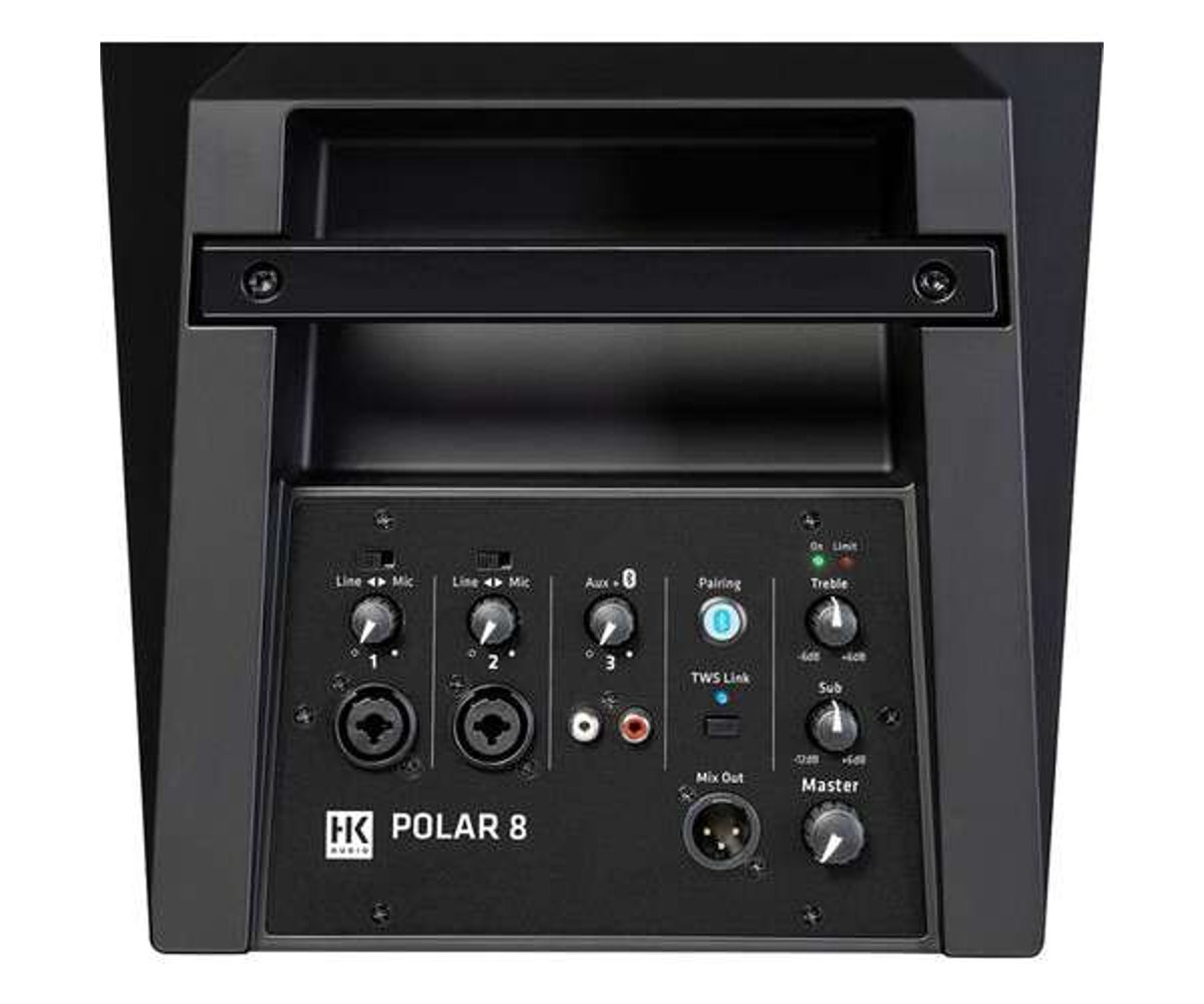 Designed to deliver high-quality audio, the HK Audio POLAR 8 is a highly flexible, easy to use, 1200W powered column array system with an integrated mixer and Bluetooth audio streaming well suited for the demands of today's working musicians, singer/songwriters, mobile DJs as well as a wide range of audiovisual applications in business schools, houses of worship, and other sound providers.