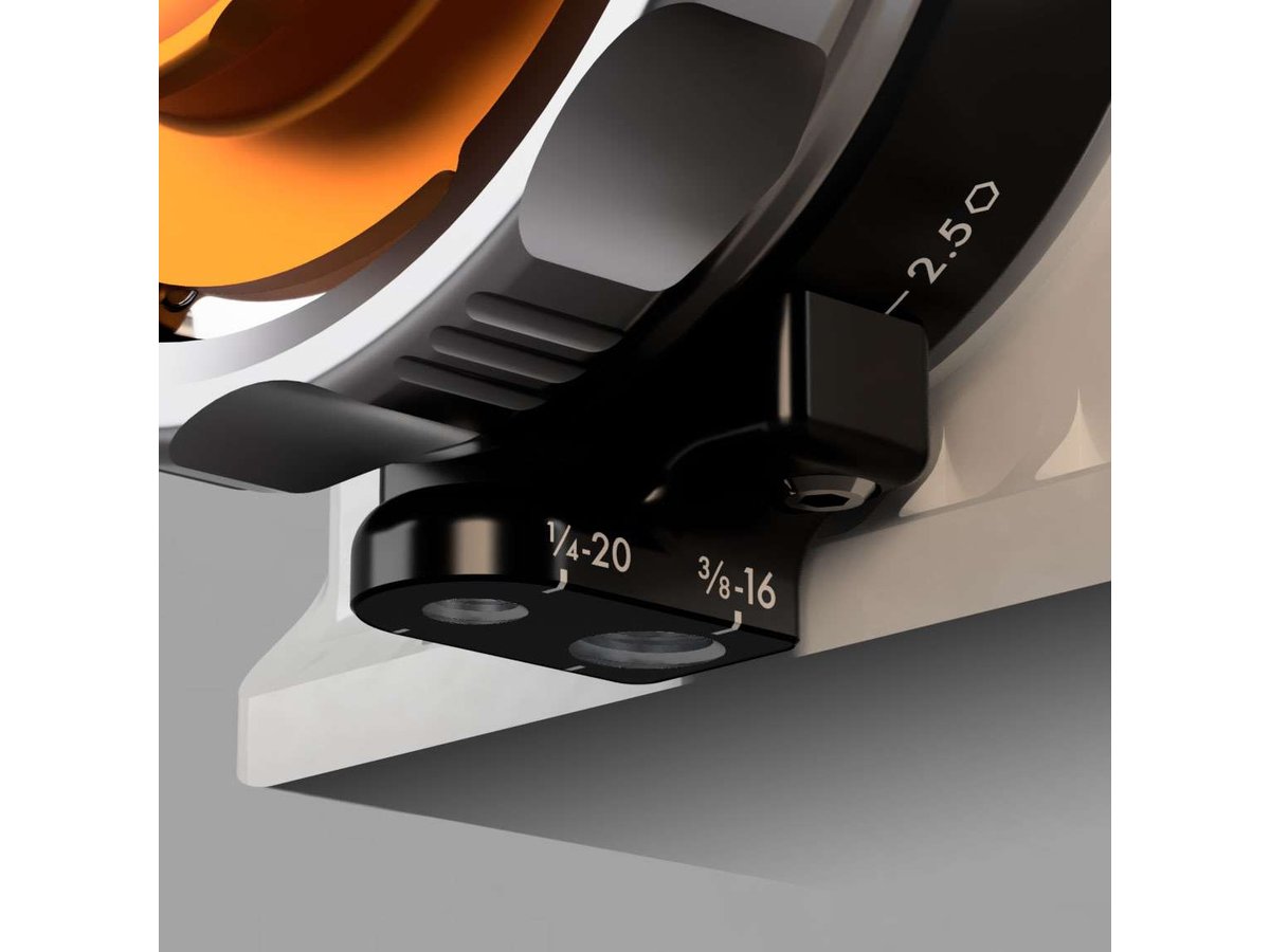 Included is a robust support foot engineered to match the Komodo’s body size, allowing the PL mount to be tied rigidly to a base plate or other support with 1/4-20 and 3/8-16 fittings.