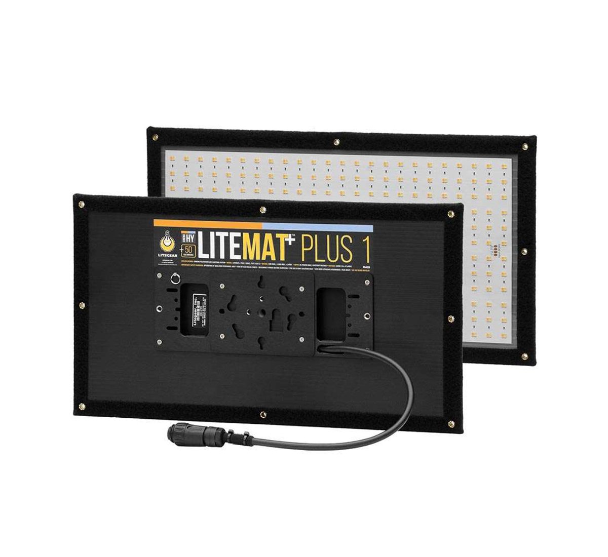 The LiteMat Plus 1 is one of the most affordable, professional cinema lighting fixture available today. The smallest of the LiteMat series, it’s easy to get into small places and also makes a great handheld. The LiteMat+ Plus 1 is based on one “tiled” light engine measuring 9.5 in. x 19 in. (240 mm x 480 mm). The head unit features 576 new CineMitter LEDs and is covered by a thin, clear polycarbonate layer and bordered entirely with Velcro. “loop” fastener. Mounting is provided with a removable gimbal mount. The “soft through- pixelization” method allows the LiteMat+ Plus 1 to achieve surprisingly bright light levels.