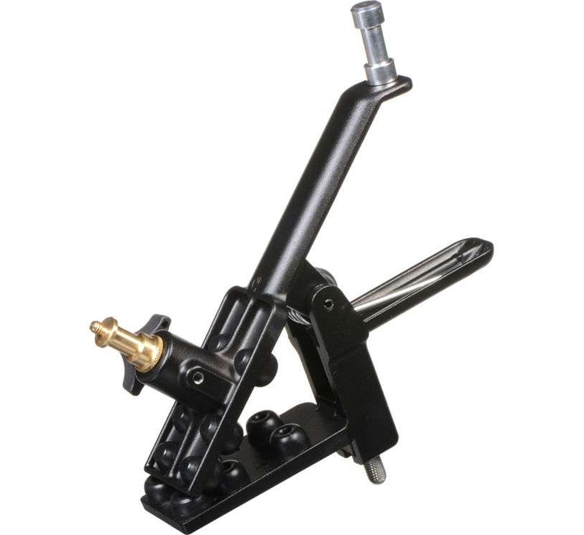 The Manfrotto 043 Sky Hook Adjustable Gaffer Clamp is a lightweight gaffer clamp, with adjustable jaws to handle tubes from 1" to 2-1/2". Features one fixed 5/8" stud, and one 5/8" socket with double-ended 3/8" to 1/4" spigot.