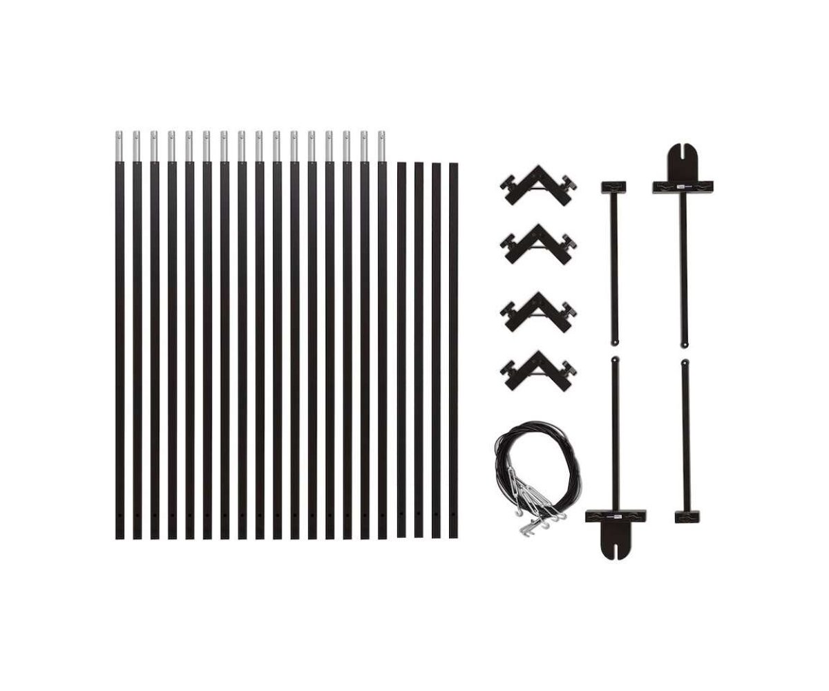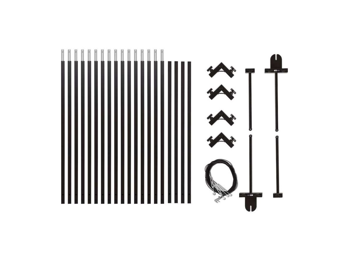 The Avenger H2000M 6 x 6 m Modular Overhead Frame is comprised of heavy duty 3.0 mm thick square section aluminum alloy tubes that slot and pin lock together, rapidly providing a stable frame for silks, scrims, etc. By reducing or adding tubes you can vary the frame size.