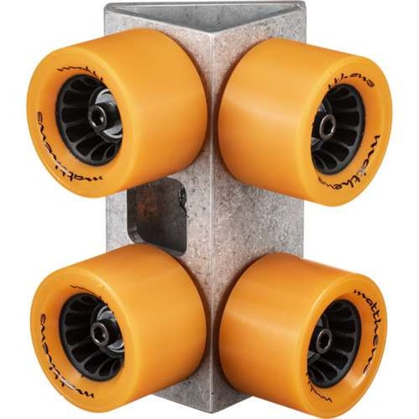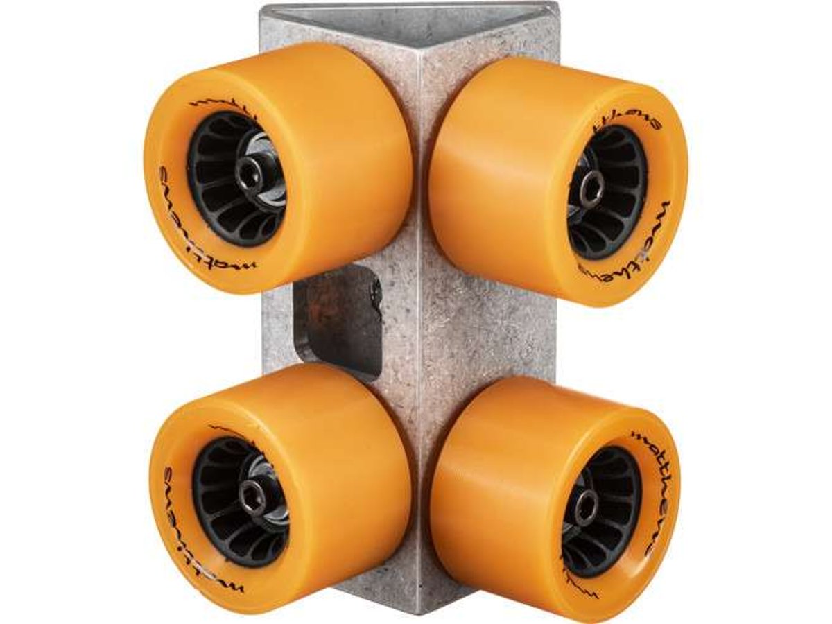 The Mathews 395012 Hot Button Track Wheels are a set of four skateboard type dolly track wheels. These wheels are replacements for the originals or can be purchased for spare parts. Each set consists of 4 wheels offset at 45° for the 20' track.