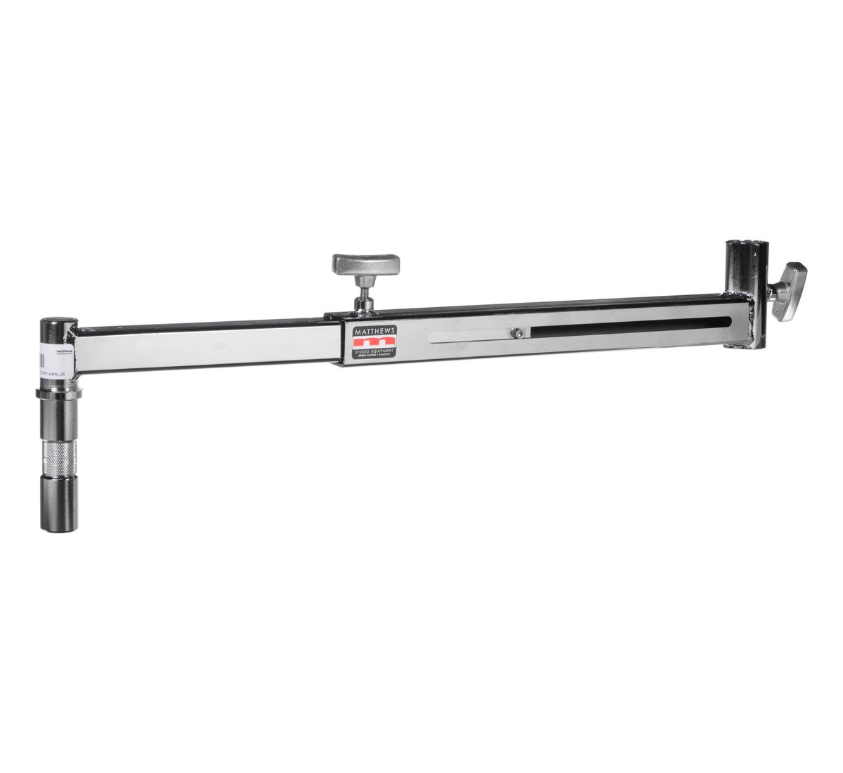 The Matthews Hollywood Offset Arm is a convenient tool when a lighting fixture needs to be placed off center, for the purpose of hiding the stand behind a set wall, or coming over the top of the set. This arm terminates in double 1-1/8" pins and extends from 18 to 25".