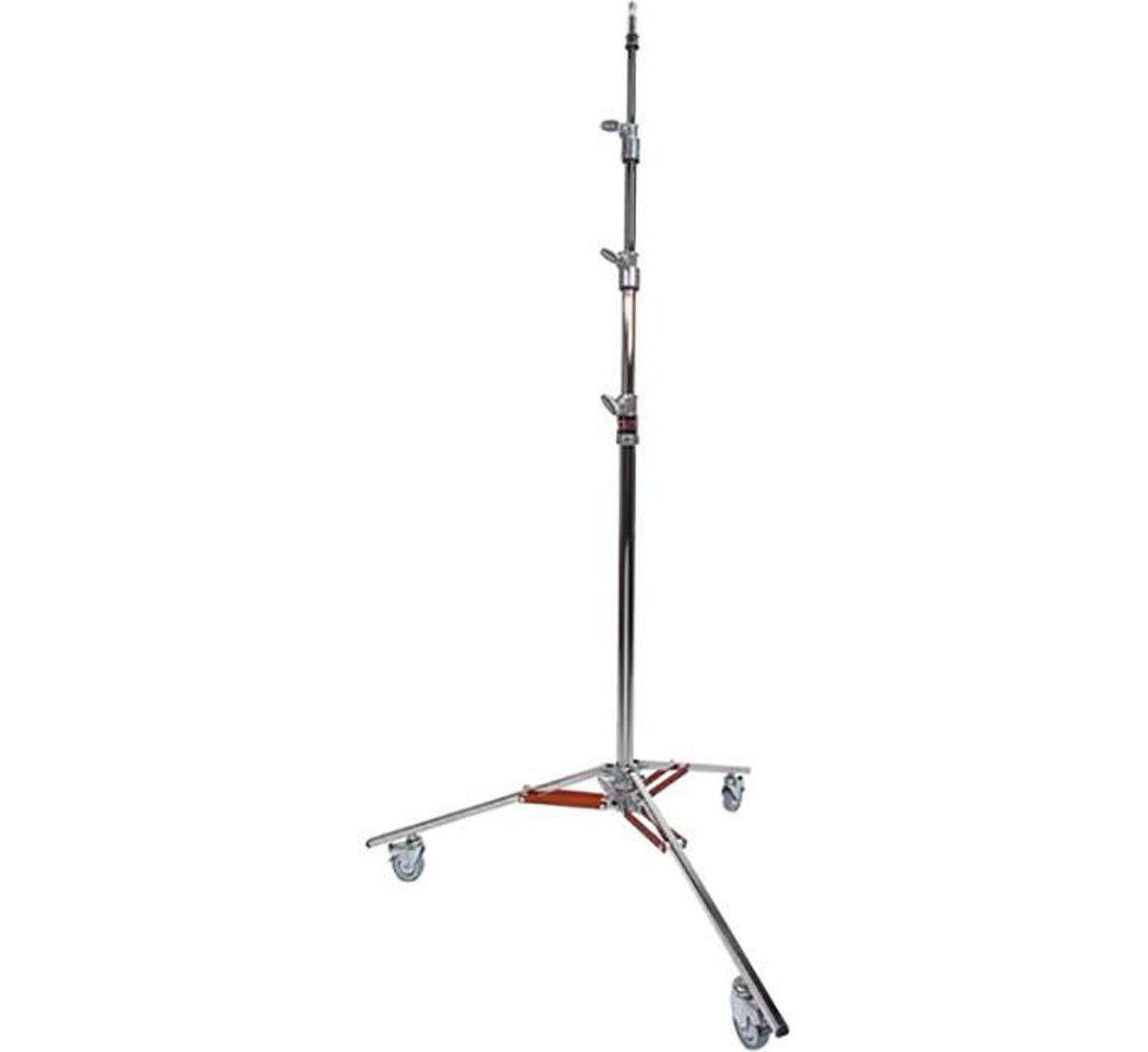 These very popular lighting stands for Baby fixtures, which require a 5/8" mounting pin, are made with steel legs and riser assembly. The tripod braced base with 'all-axis' non-marking locking casters provides great stability. Matthews casters are non-marking and lock in the caster position as well as rotationally. Made from steel components - not plastic - and will provide years of durable service.