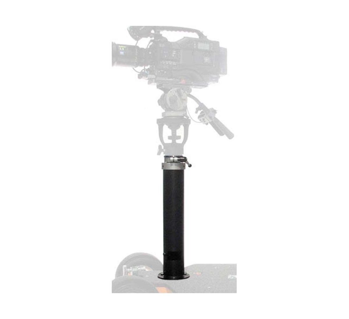 Mount the camera on a sliding dolly with the Matthews Telescoping Bazooka. It attaches to all Matthews doorway dollies. The Bazooka requires an optional Elemac Male Mounting Plate and three bolts to connect itself on the doorway dolly. It supports flat bases and tripod heads having 150mm and 100mm bowls.