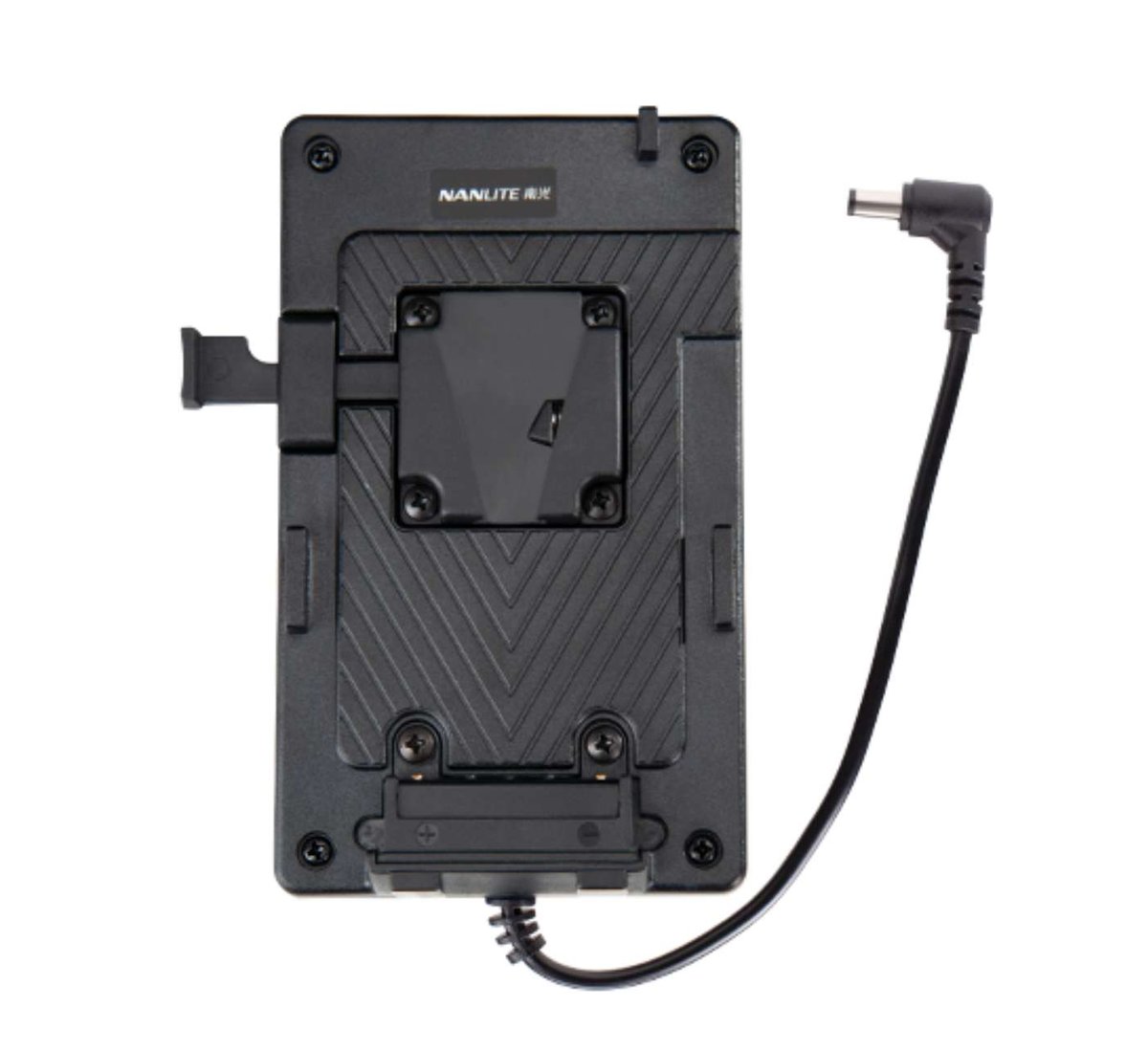 The V-mount battery adapter is specially designed to fit SONY V-mount battery. The voltage of a V-mount battery will be 14.8V, which is the standard output power. The adapater also has clamp for fixing on the light stand easier.