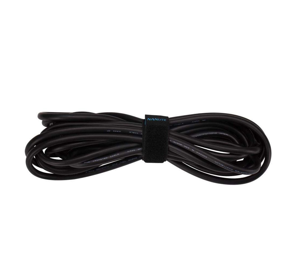 The Nanlite Forza 300 and Forza 500 Head Extension Cable. Doubles the maximum possible distance between the Forza 300 and 500's light heads to their satellite control power stations from 8.2 ft (2.5m) to 16.4 ft (5m)