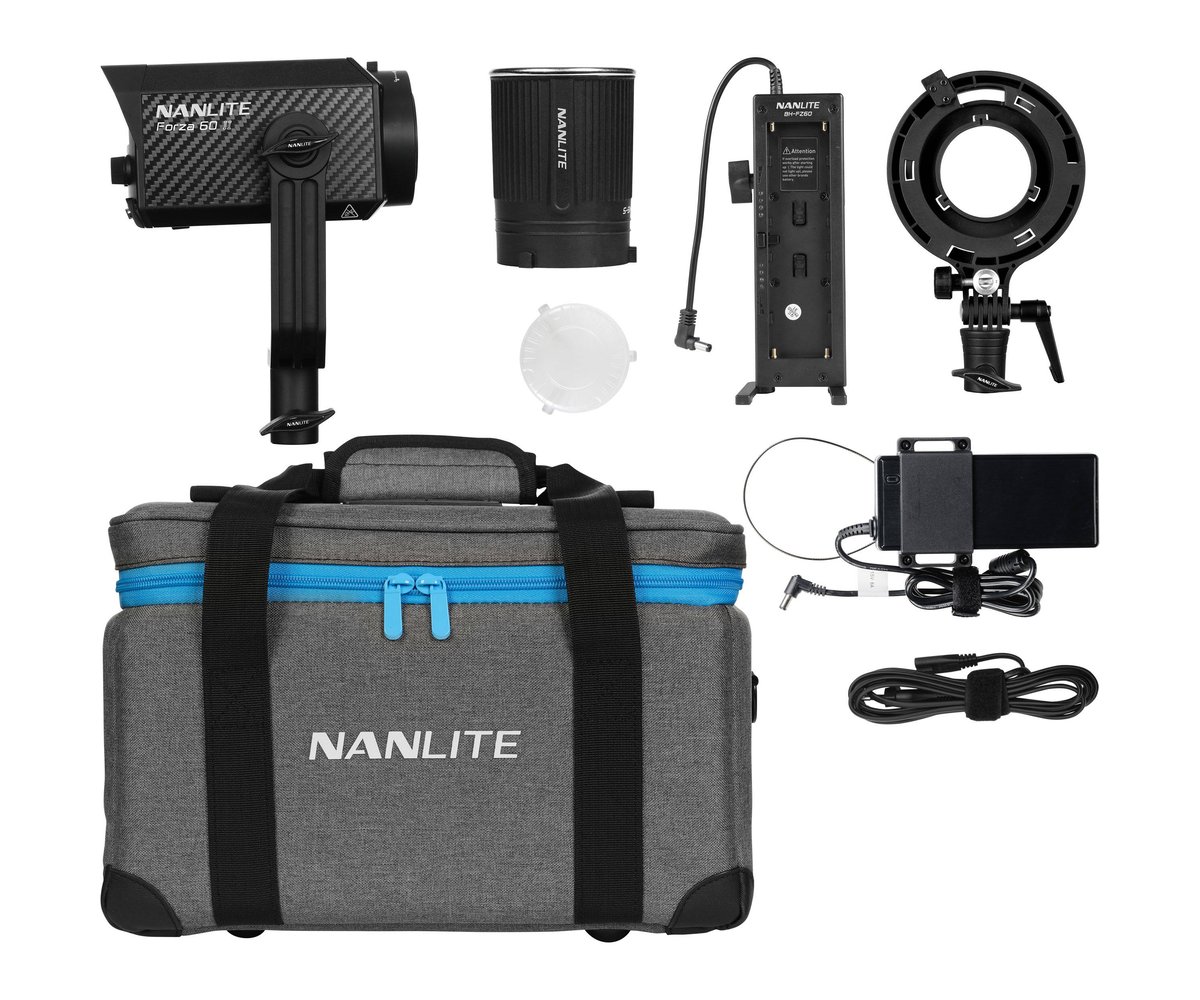 Ideal for illuminating your video recordings and photo productions, this light is ready for worldwide use thanks to its 110 to 240 VAC power supply, but it can also run on optional NP-F or V-mount batteries for situations when AC current is unavailable. The Forza 60 II ships with a yoke and 5/8" receiver that accepts industry-standard light stands and a Bowens adapter for compatibility with a wide array of light modifiers. A padded carry bag is supplied as well for storage and transportation.