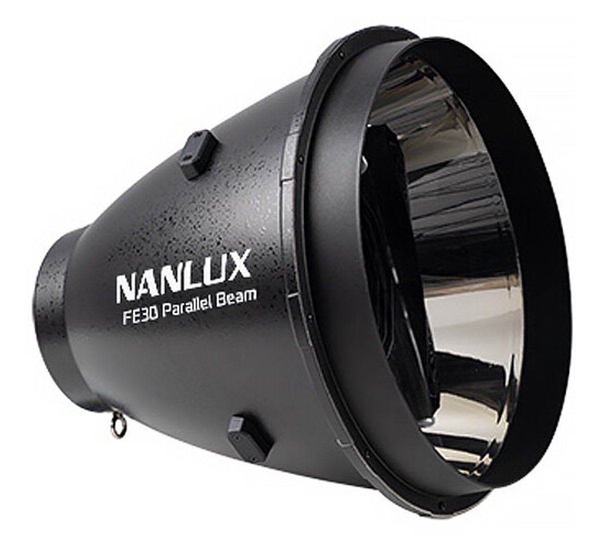 The Nanlux FE30 Parallel Beam Reflector is a professional lighting modifier with an FE mount that delivers bright, highly-defined light over long distances with a well-defined long-throw beam and minimal light loss. It features an optimized optical design that works perfectly with the Nanlux Evoke 150C, making it an excellent solution for shooting scenarios that require a high-intensity parallel beam, natural light with low light decay, or efficient light for use with reflectors. The FE mount on this parallel beam reflector features electric contacts for sharing information with the fixture to optimize performance. The FE30 Parallel Beam Reflector is also compatible with any light that has an FM mount. It comes with a protective cover, safety cable, and carrying bag.