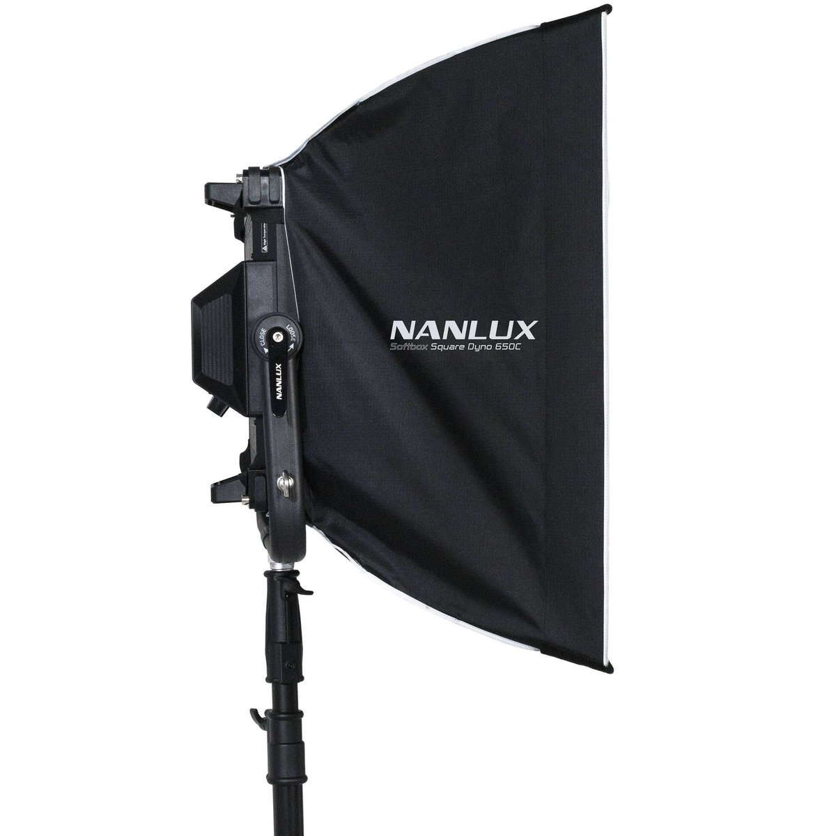 Designed specifically for the Dyno fixture, the 4' Rectangular Softbox for Dyno 650C LED Light from Nanlux softens the output and lowers the contrast of the light's bright LEDs. The softbox has removable front and interior diffusers and a silver interior to maximize output, while an eggcrate grid is included to eliminate spill light and allow directional control that enables selective lighting.