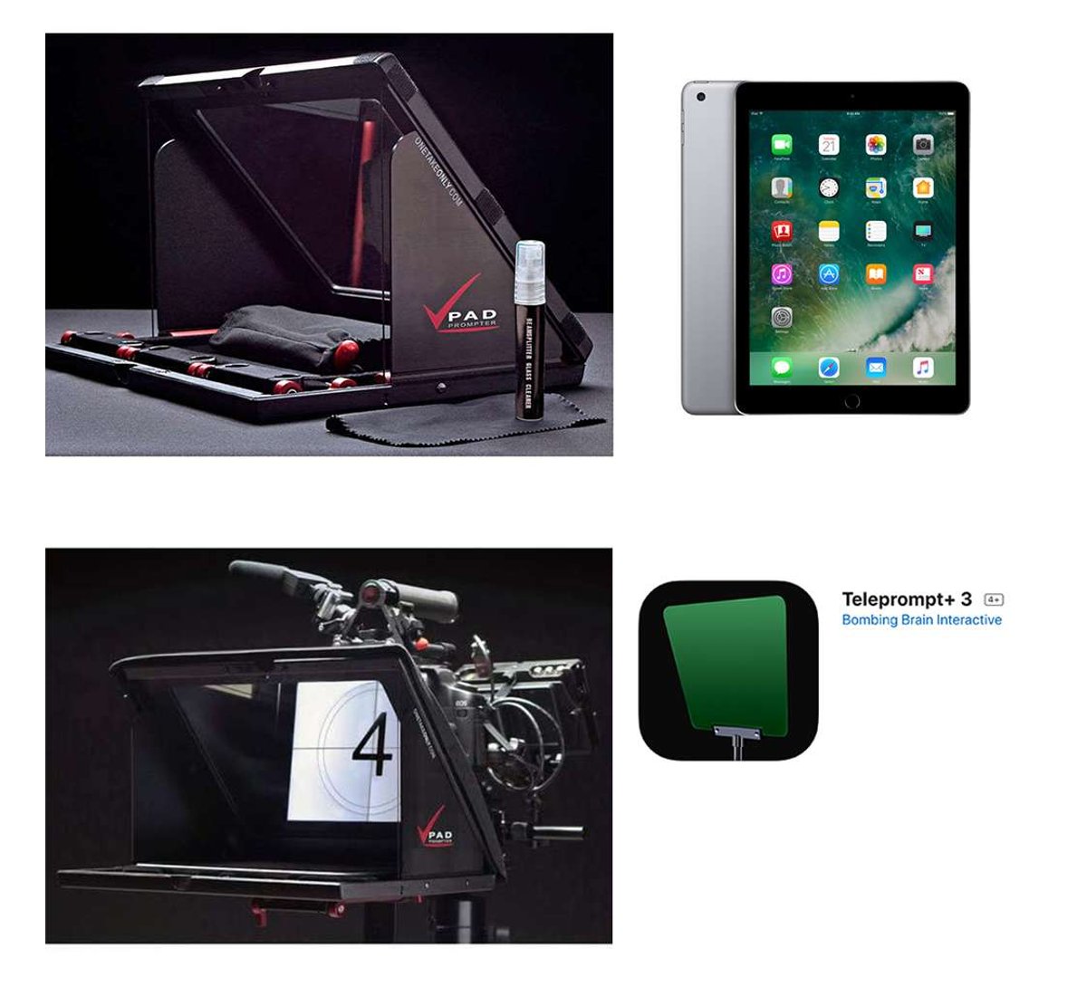 All you'll need in addition is a prompting software. If you're using an iPad, you can use any iPad-compatible software available at the Apple App Store. If you're using any other type of tablet, you can use any software compatible with that tablet. A soft carry case is also included for transport.